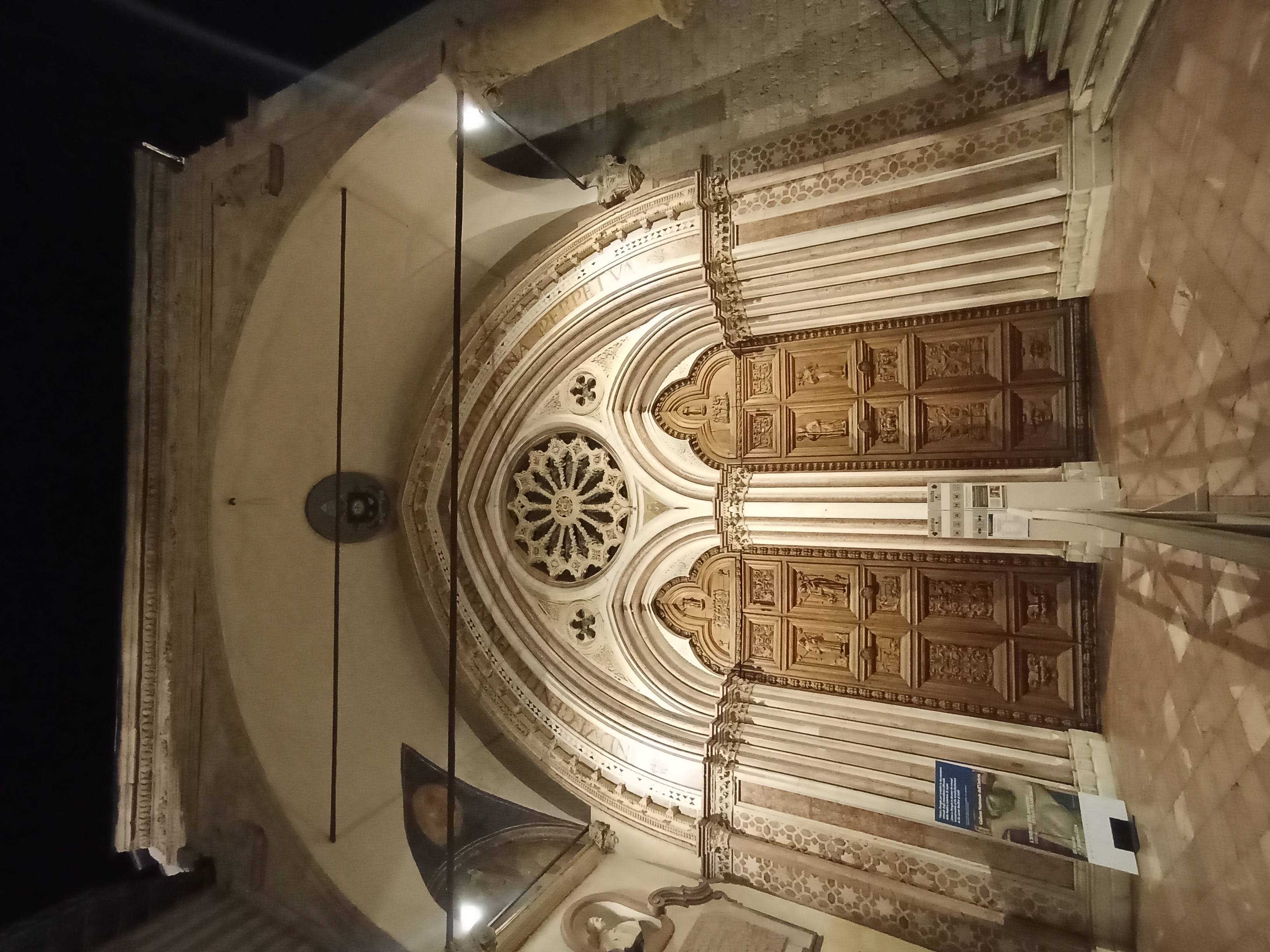 ここは元々、1226年に亡くなった聖フランチェスコ、1253年に亡くなった聖女キアーラの遺体が祀られていたサン・ジョルジョ教会の脇に建設されました。見どころはやはり、地下礼拝堂。聖女キアーラの遺体と遺品が収められており、祈りをささげる人が後を絶ちません。下りていく階段も進行方向が決められ、列に並んで聖女キアーラの遺体を拝みに進みます。またサン・フランチェスコ聖堂とともにこちらも内部の写真撮影は禁止ですので、注意してくださいね。
