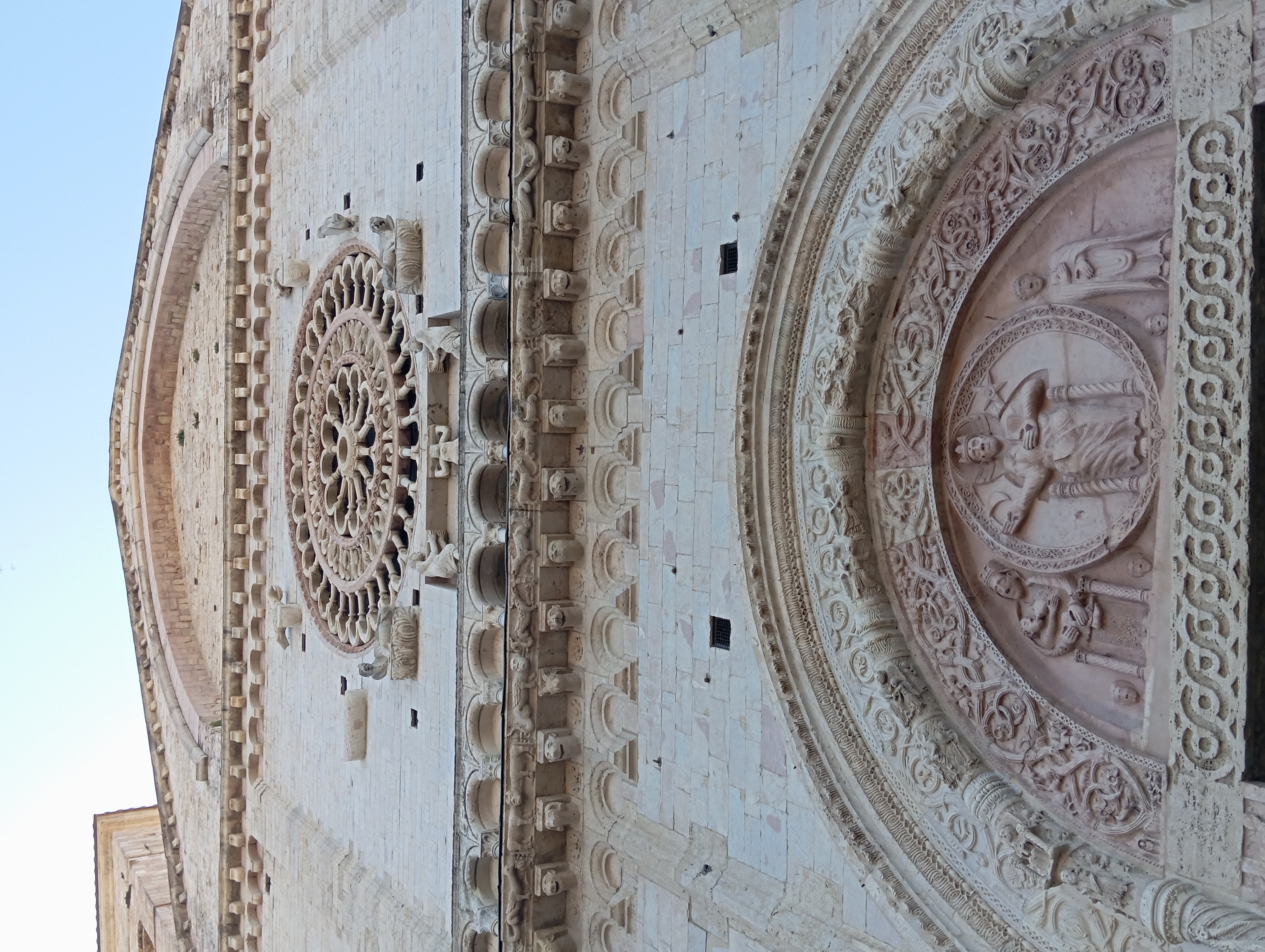 サンタ・キアーラ聖堂は、旧市街の東の端に位置する女子修道院。聖フランチェスコに師事したサンタ・キアーラを祀った教会です。薄いピンクを合わせた縞のファサードと左側のアーチが目印。