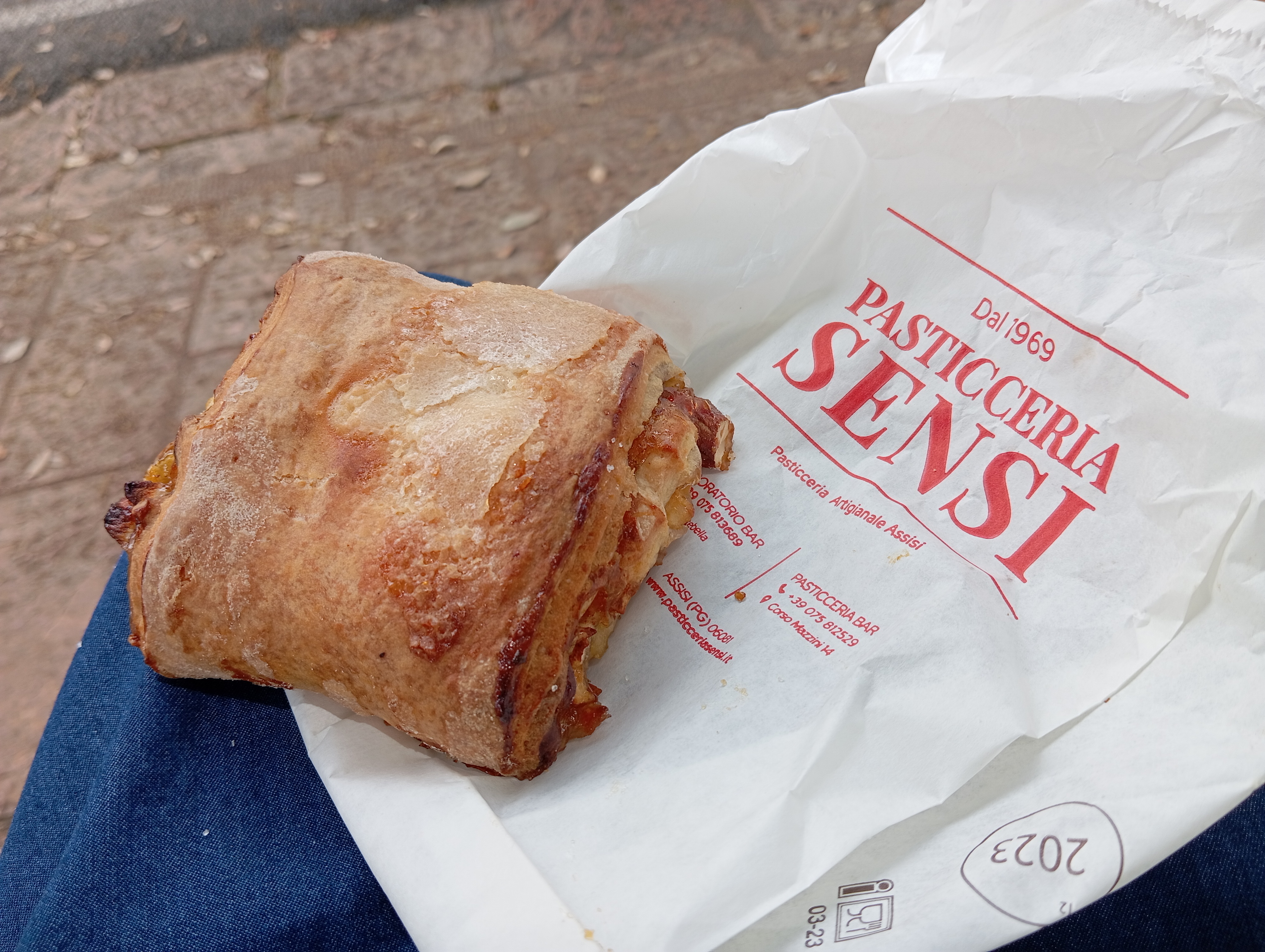 地方に来たらやはりその土地のものを・・・ということで、がっつりと猪の煮込みにウンブリアのパン、トルタ・アル・テスト添え。ワインももちろん、ウンブリアを代表するワインの1つ、モンファルコの赤を。