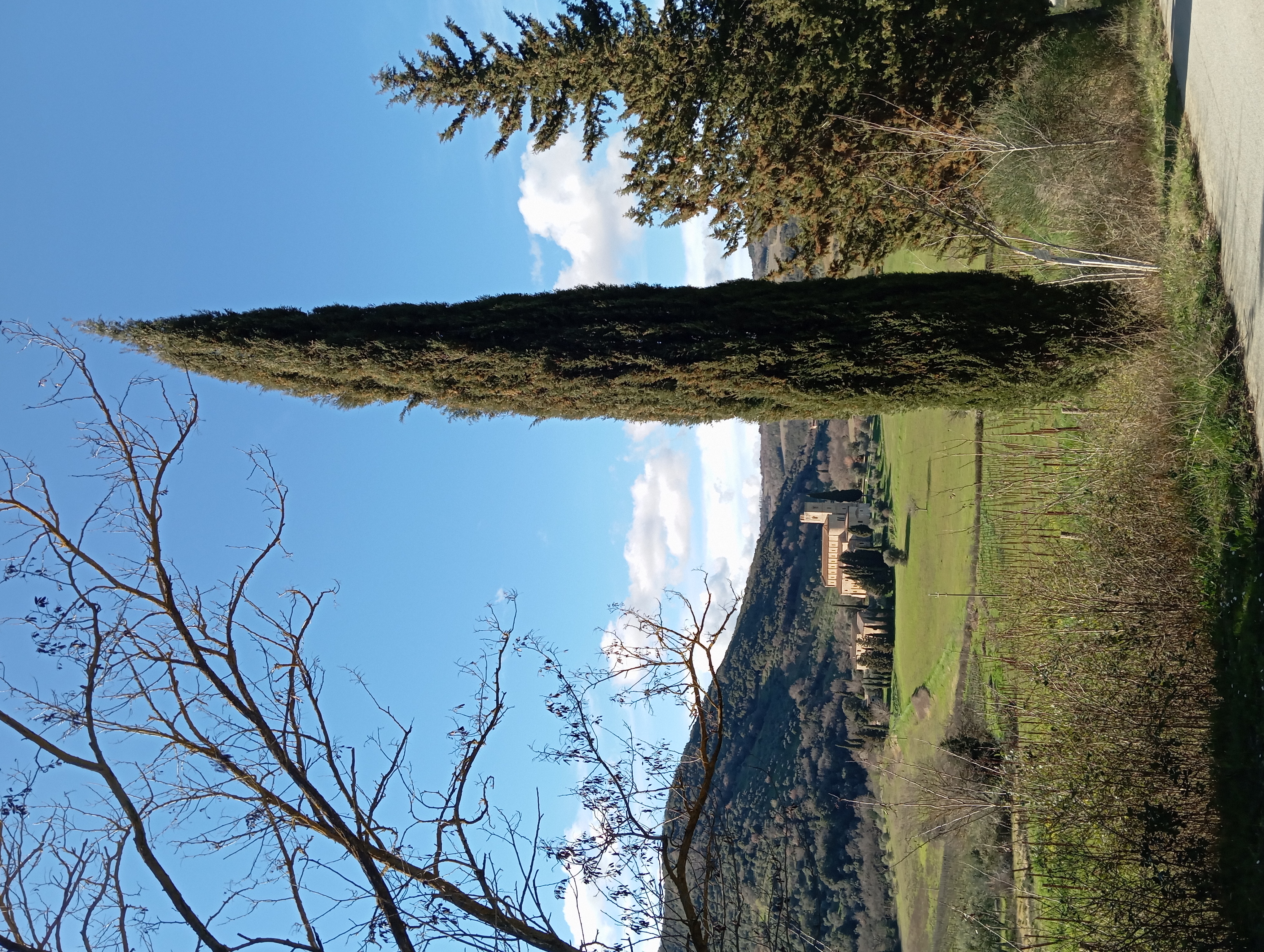教会も素晴らしいですが、後陣側の糸杉の景色、大きなオリーブの風景がまたたまりません!