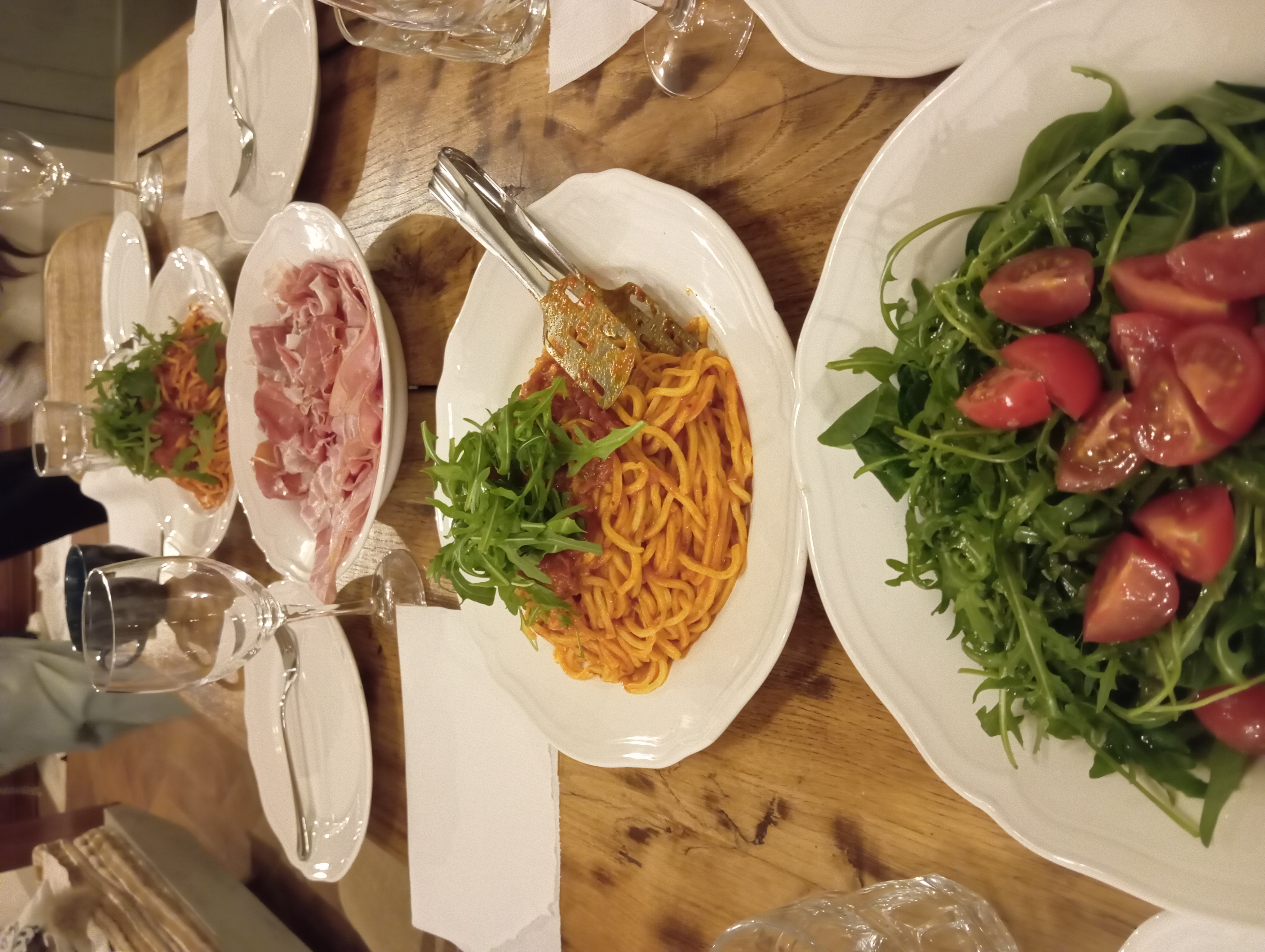 そして何より、お料理がめちゃくちゃ美味しかったのです・・・おススメされたトリュフのラビオリ(もちろん手作り)はバラの花びらがちりばめられた上品はお味+トリュフの香りがむんむん。猪ソースのタリアテッレ。野菜たっぷりの牛肉のタリアータに猪の煮込み。ワインのデカンタとサービスのクッキー、エスプレッソで1人30ユーロでいろんなものを味わえた上にお腹いっぱいで大満足でした。ちなみにここはロカンダ=宿付きのレストランなので、ご興味がある方は こちらからご予約を。