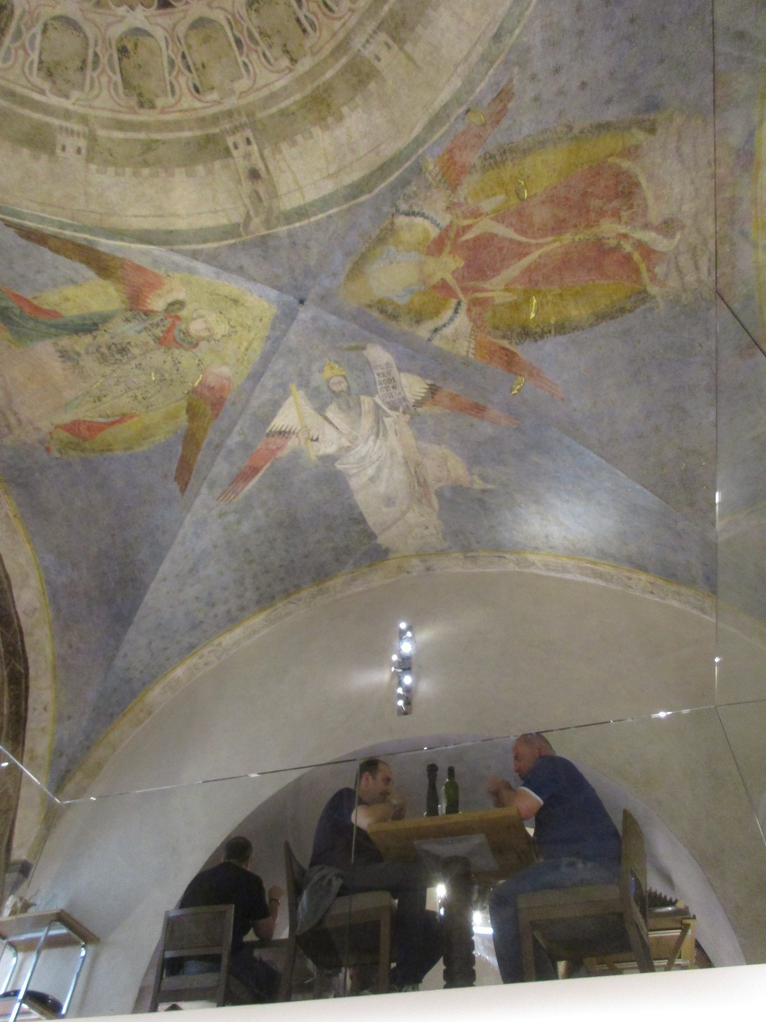 フレスコ画が一面に!このフレスコ画については、ダンテも言及したということが近年分かっています。1階で食事となっても、2階で間近で見て行ってください。
