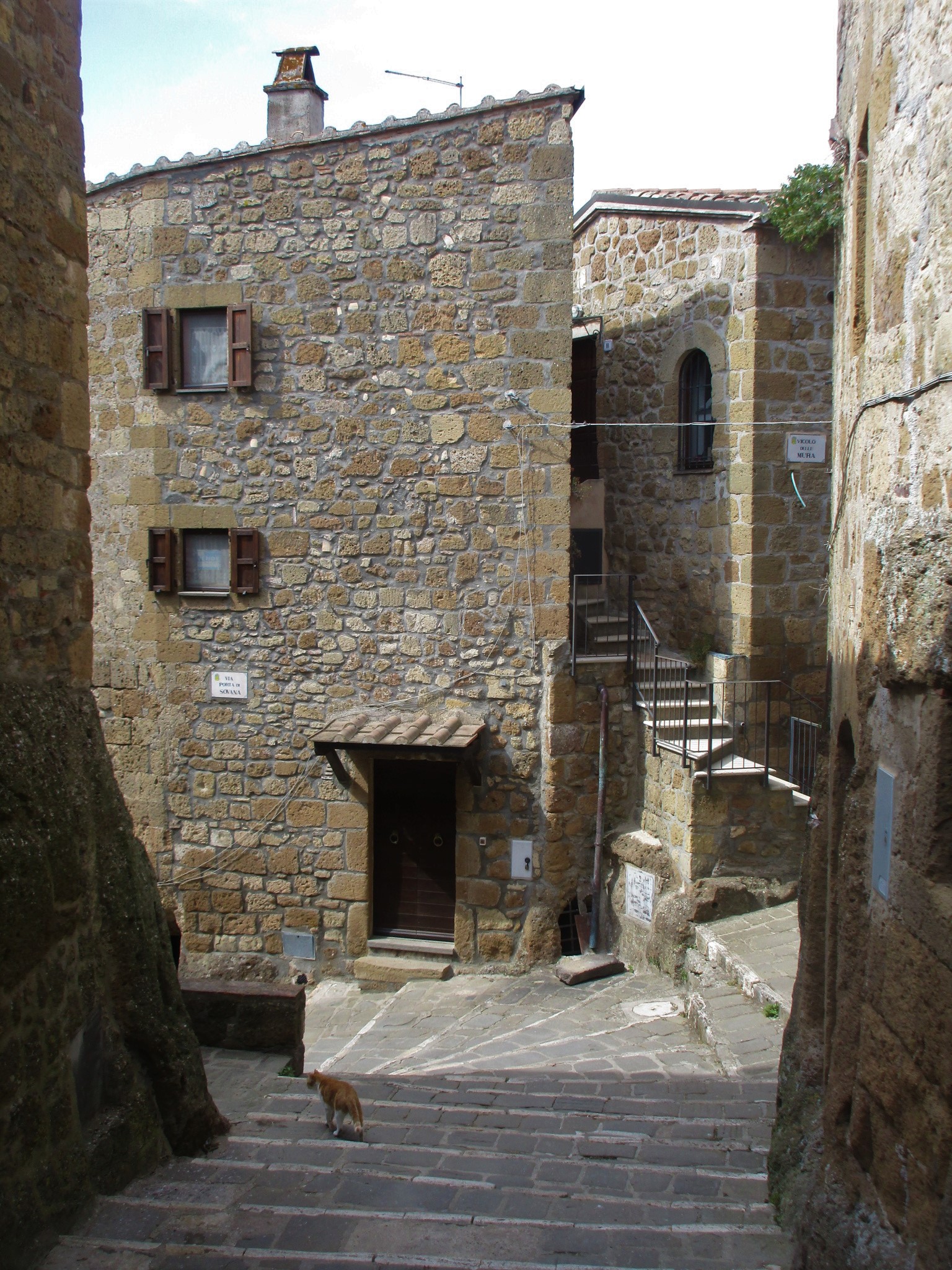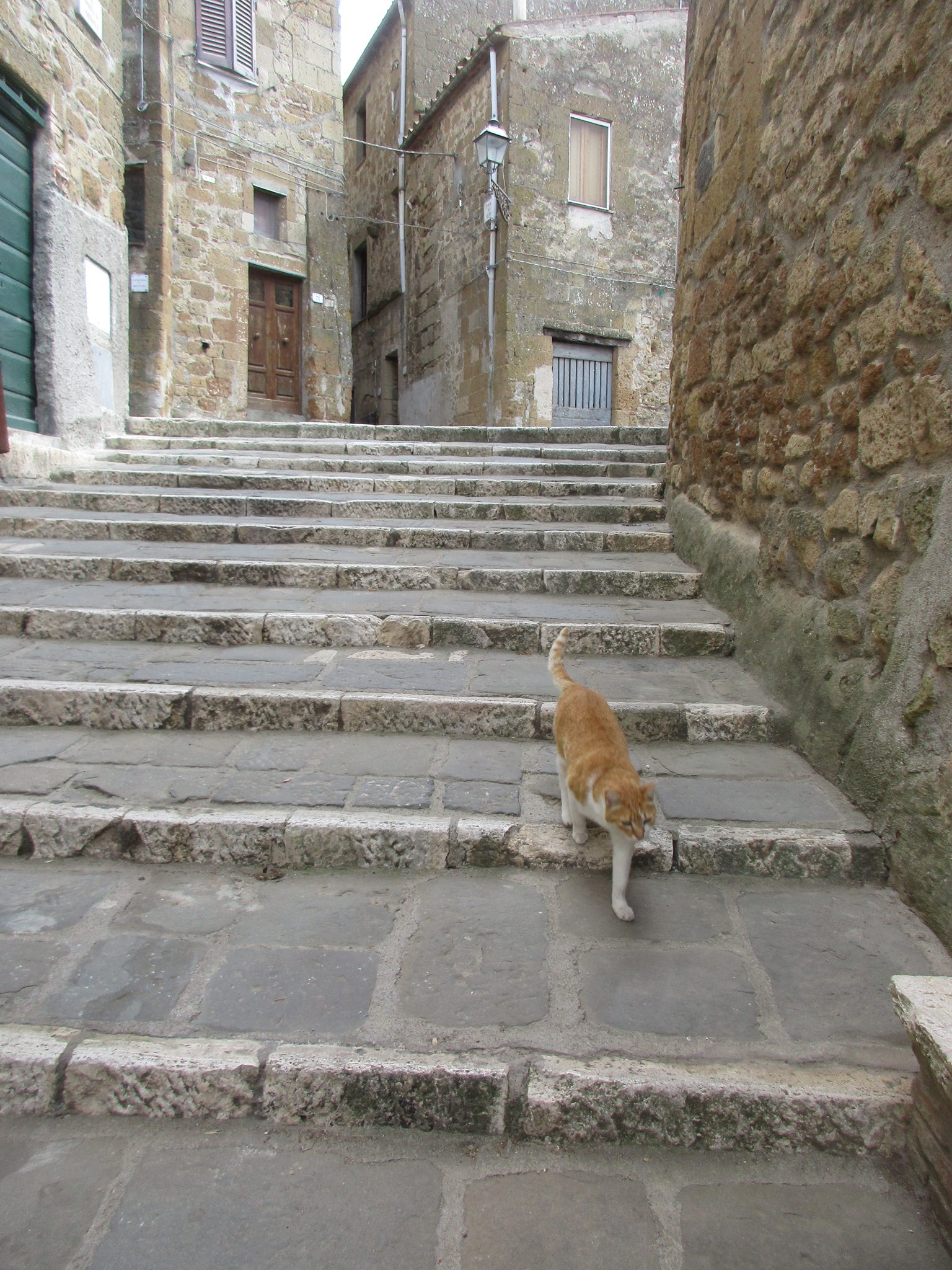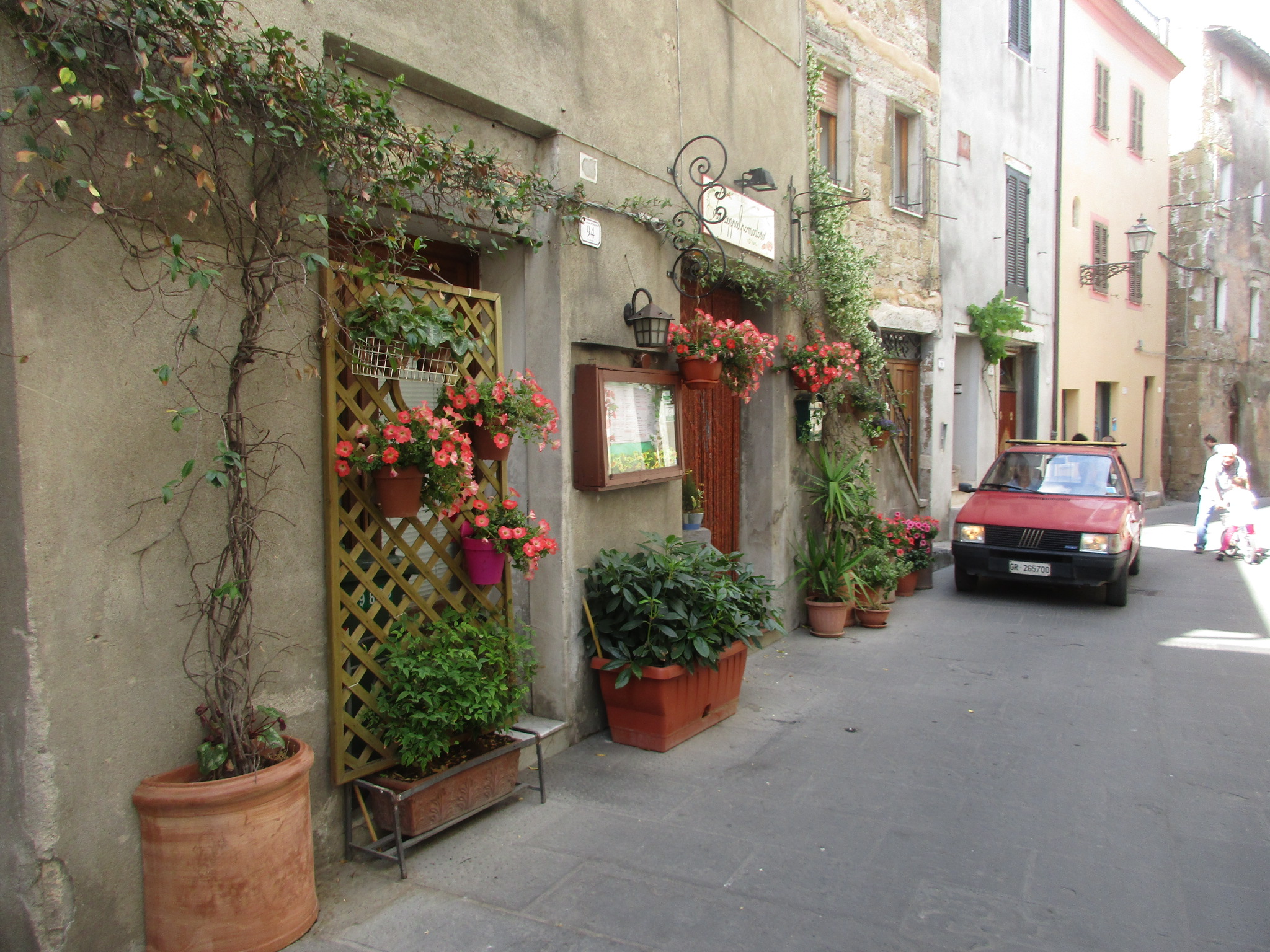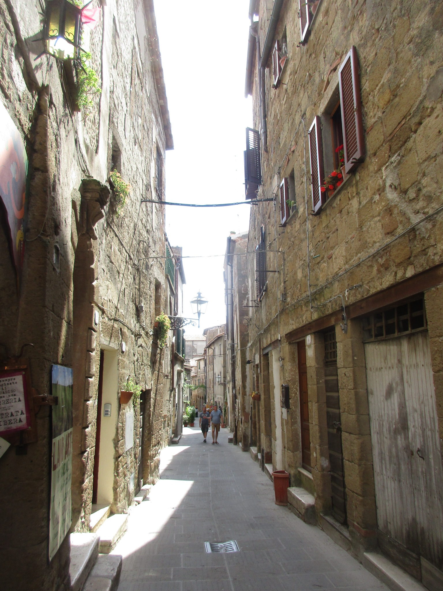 帰りはもう1つ別の道へ行くと、右側にドゥオモが現れ、さらに進むとオルシーニ広場に戻ってきます。これで旧市街をおおよそ一周したことになありますが、この2つの通りだけでなく、村の中に60もあるという路地にも気ままに入ってみてください。村の北側や西側は特に観光客も少なく、おばあちゃんが家の前で編み物をしていたり、ご近所さんがイスを出しておしゃべりしていたり、独特の村の中に今も息づく日々の暮らしが垣間見えます。