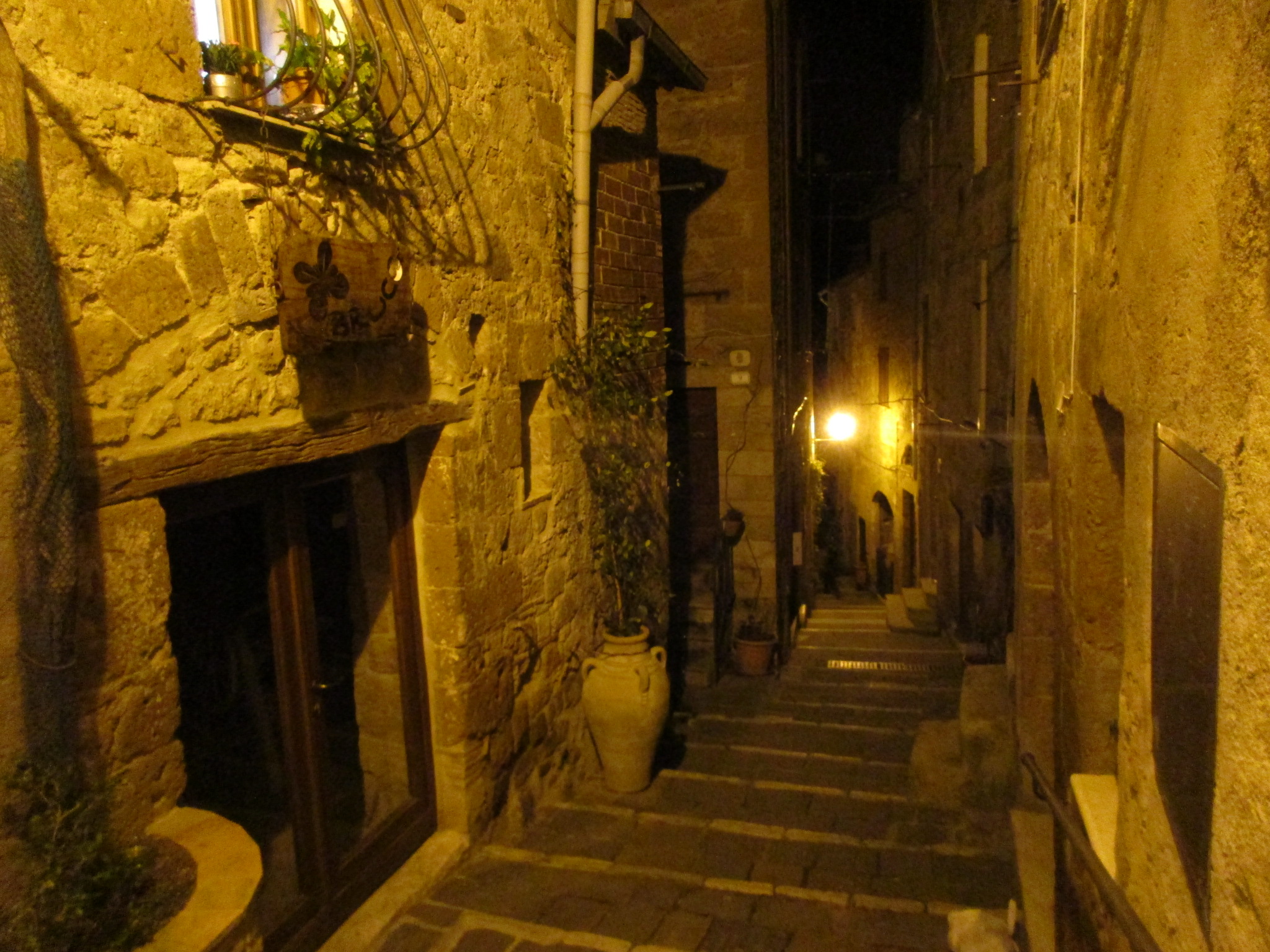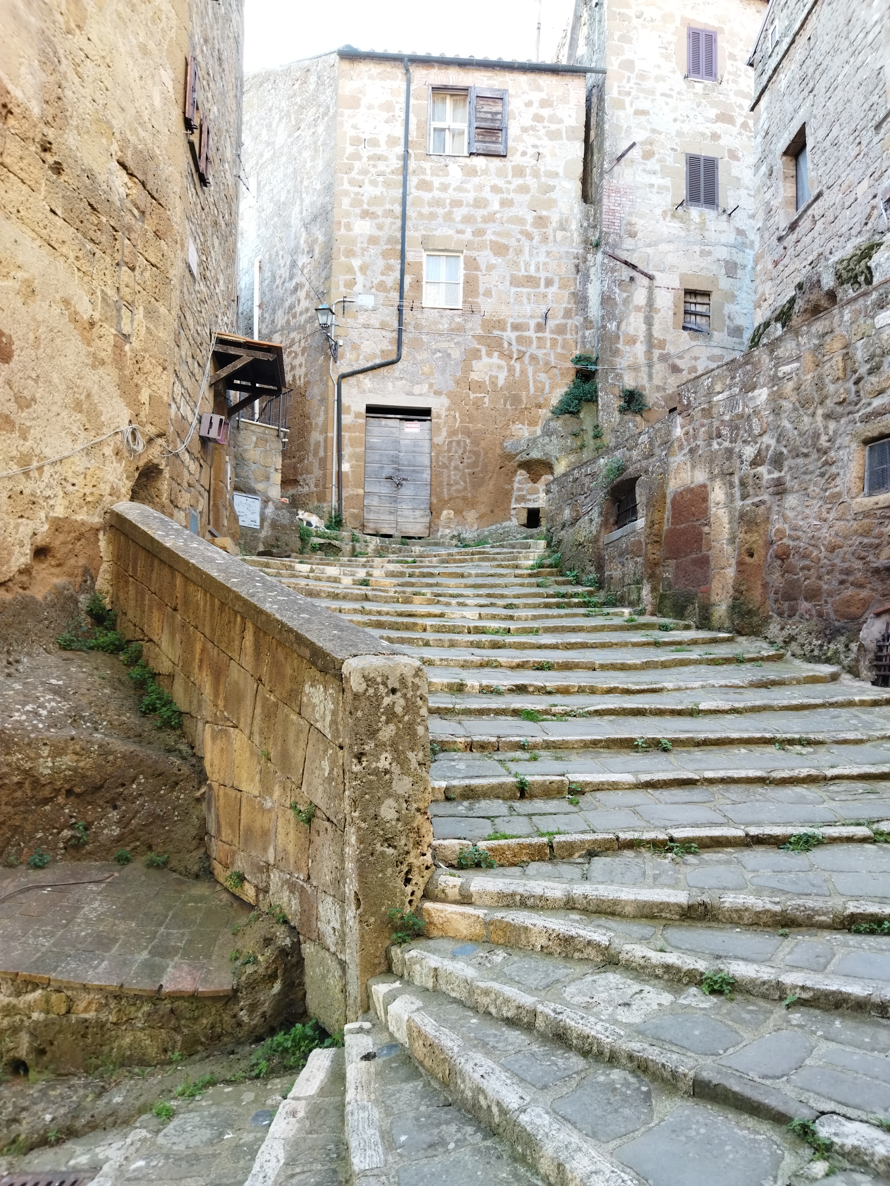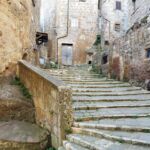 時間のある方は、門に入る前のフランチェスコ・ペトルッチョーリ広場から階段を降り、ピティリアーノが建つ凝灰岩の真下、南側をぐるりと囲む「パノラマ通り」も散歩してみましょう。下から見上げる村はまた迫力満点!
