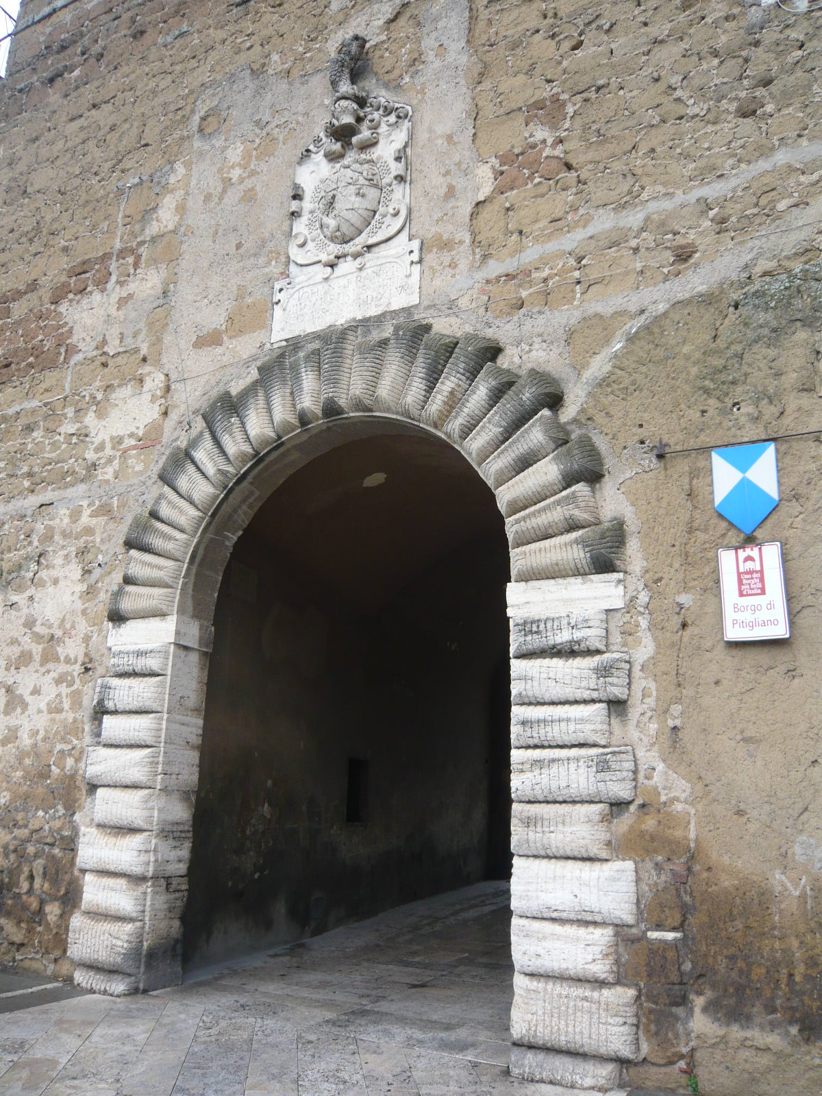 一方その反対側には立派なメディチ家の水道橋 が。もともとは1500年代にオルシーニ家統治下において水道設備を向上させるために着工されましたが、特殊な町の立地条件から工事は長引き、完成は町の統治がメディチ家に移った1639年でした。