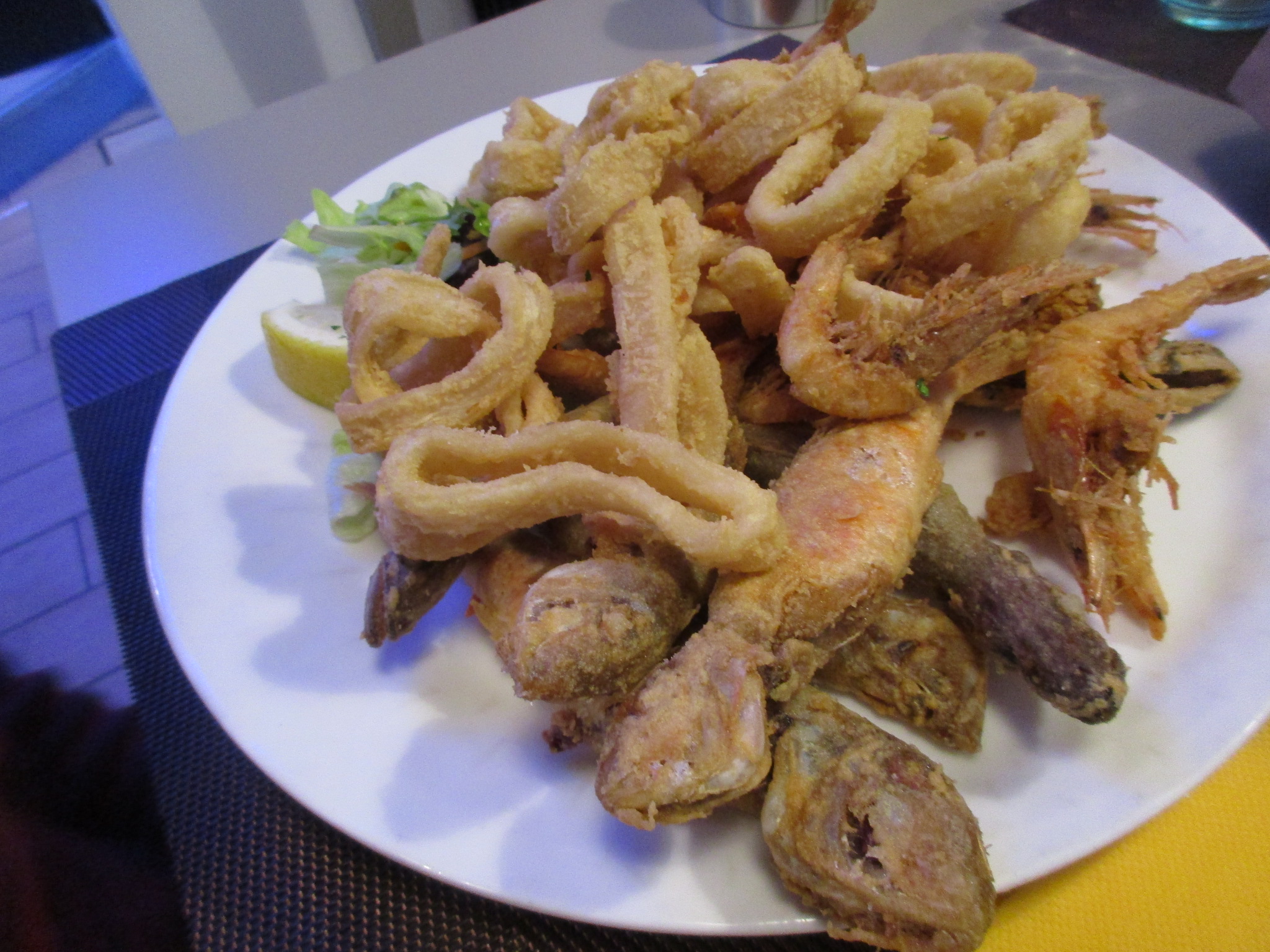 この日ある食材で作るもののため、タコが多かったのが残念(前菜でも食べたし)だったけど、味は絶妙!だし、何よりボリュームがあるので、シェアでも良さそう。お値段は、グラスワイン2杯、水2本、前菜盛り合わせ2人前、メイン4皿、デザート1つ、カッフェ2つで、100ユーロ(ホントは101だったけどオマケしてくれました)。ポーションは多めなので注文時はよく考えましょう。