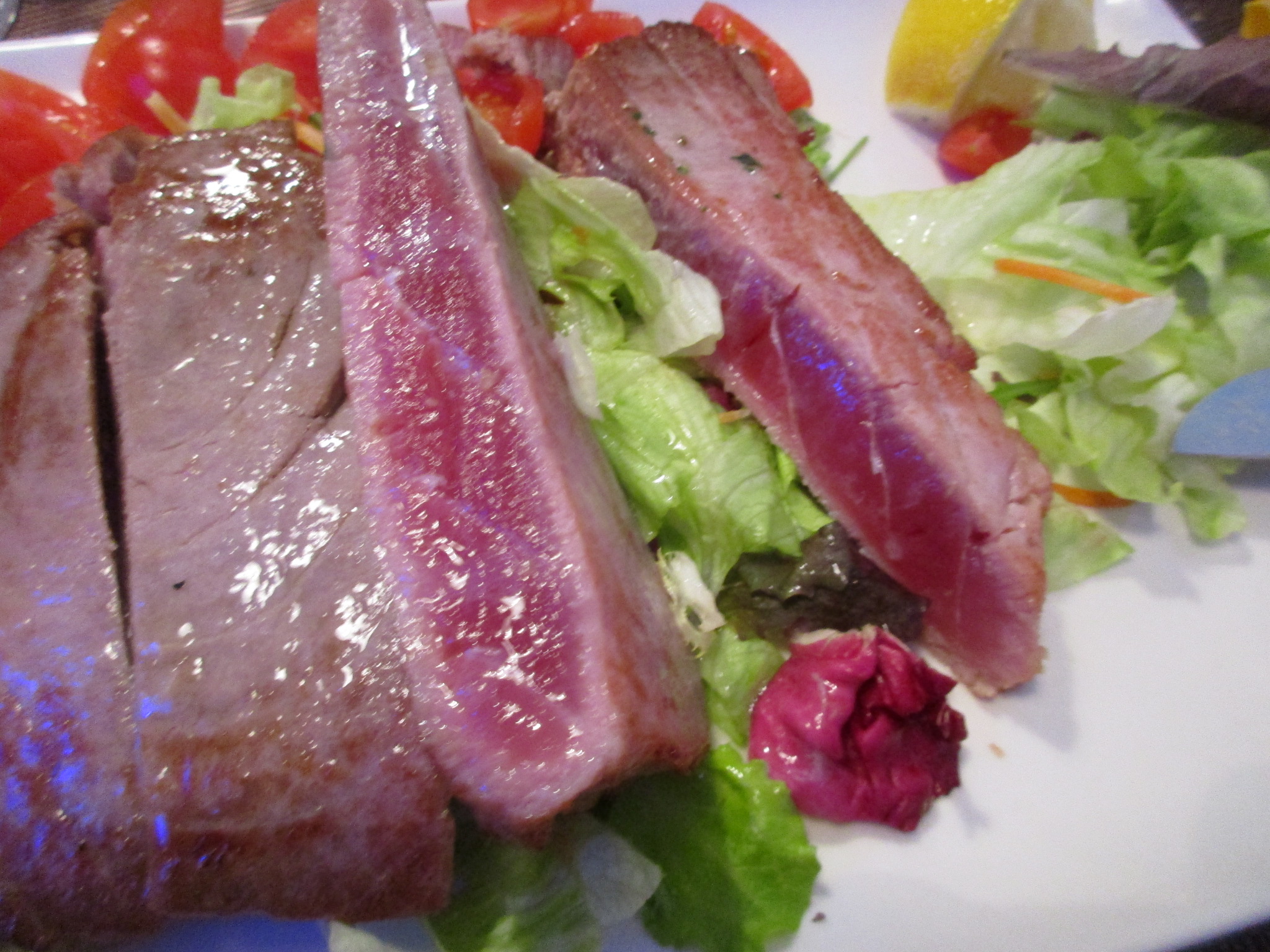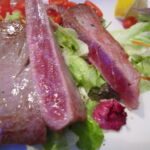 タリアータは牛肉でもやりますが、表面を軽く焼いて中はレアに仕上げてカットしたもの。まず、その大きさにビックリ!そして、絶妙の焼き加減!生はとろん、とマグロの美味しさが際立ち・・・もちろん、塩&レモン&オリーブオイルでも激ウマですが、「ああ、ポン酢と刻みネギで食べたい」と日本人の方なら思ってしまうはず(笑)