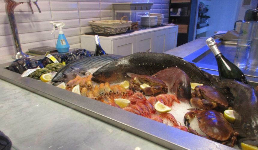 FISHING LAB に続く、近年オープンしたもう1軒の魚専門のレストランです。ウリは「仕入れによって代わるメニュー&仕入れた魚をカウンターから選んで調理してもらうことができる」だそうなんですが、もちろんカウンター後ろの黒板に書いてあるメニューからも選ぶことができます。