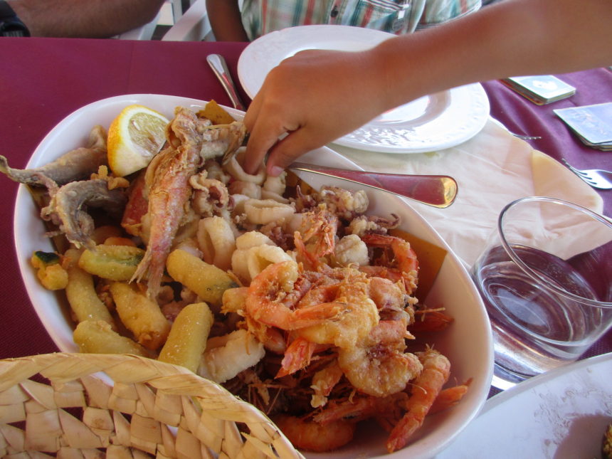 定番の海の幸のスパゲッティ、ここはトマトありバージョン。ちなみにトマトなしは「ビアンコ=白」、トマトありは「ロッソ=赤」。メニューにどちらか書いてあるところもあるし、ないところもあるので、気になる方は確認してからオーダーしましょう。