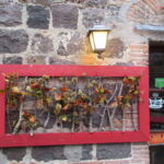 広場からは別の路地行って、またレナート・マージ通りに戻り更に下へ。ここも一般住宅や個人商店が並ぶ道で、帰りを考えるとあまり下りたくないかもしれませんが・・・最後まで降りると、趣のある村の門にたどり着きます。この門の外はバスの停留所。本数が少ないのでバスで来る人は少ないと思いますが、バスで来たらここが玄関口、行きは上りで帰りが下ることなりますね。