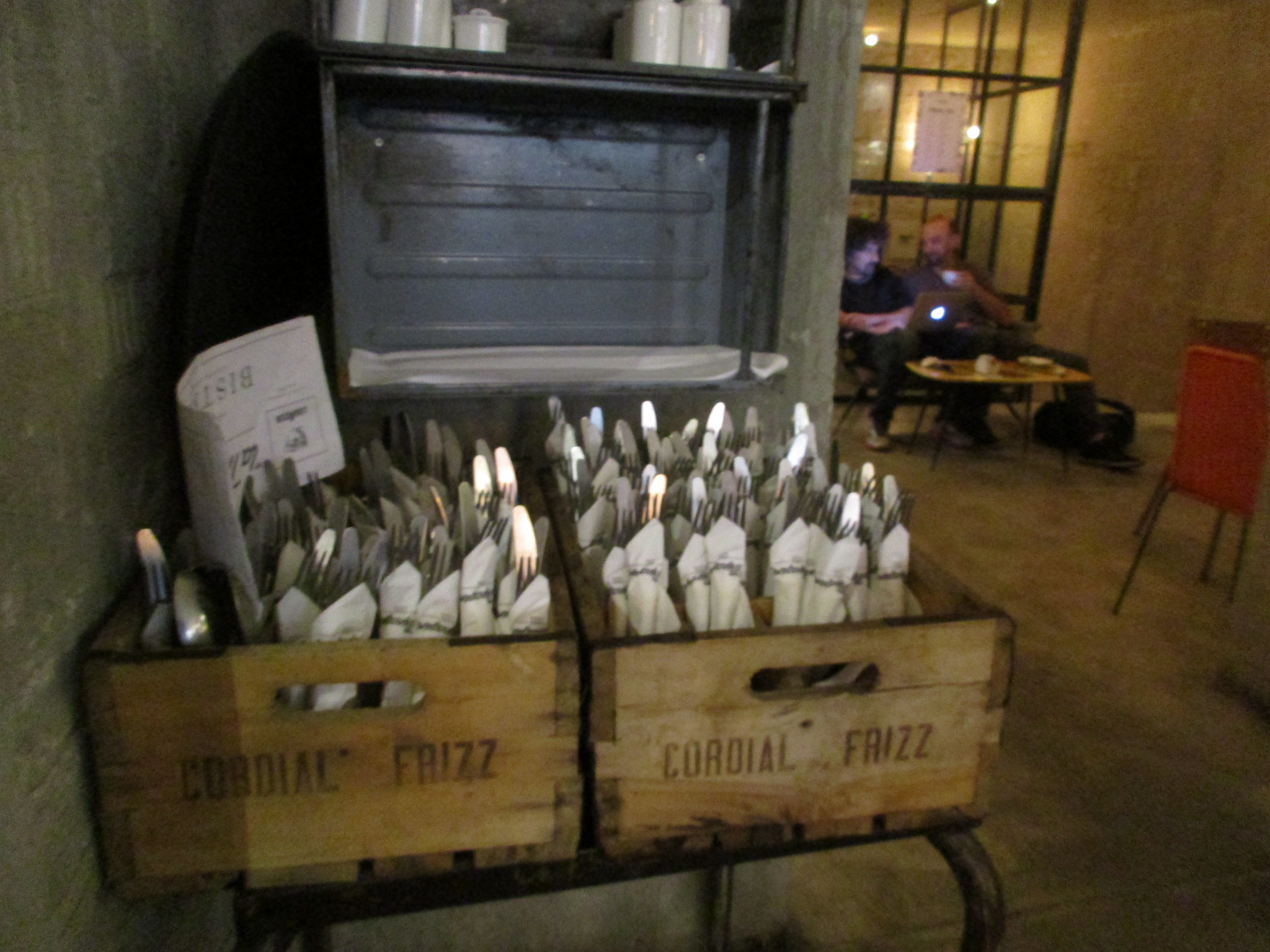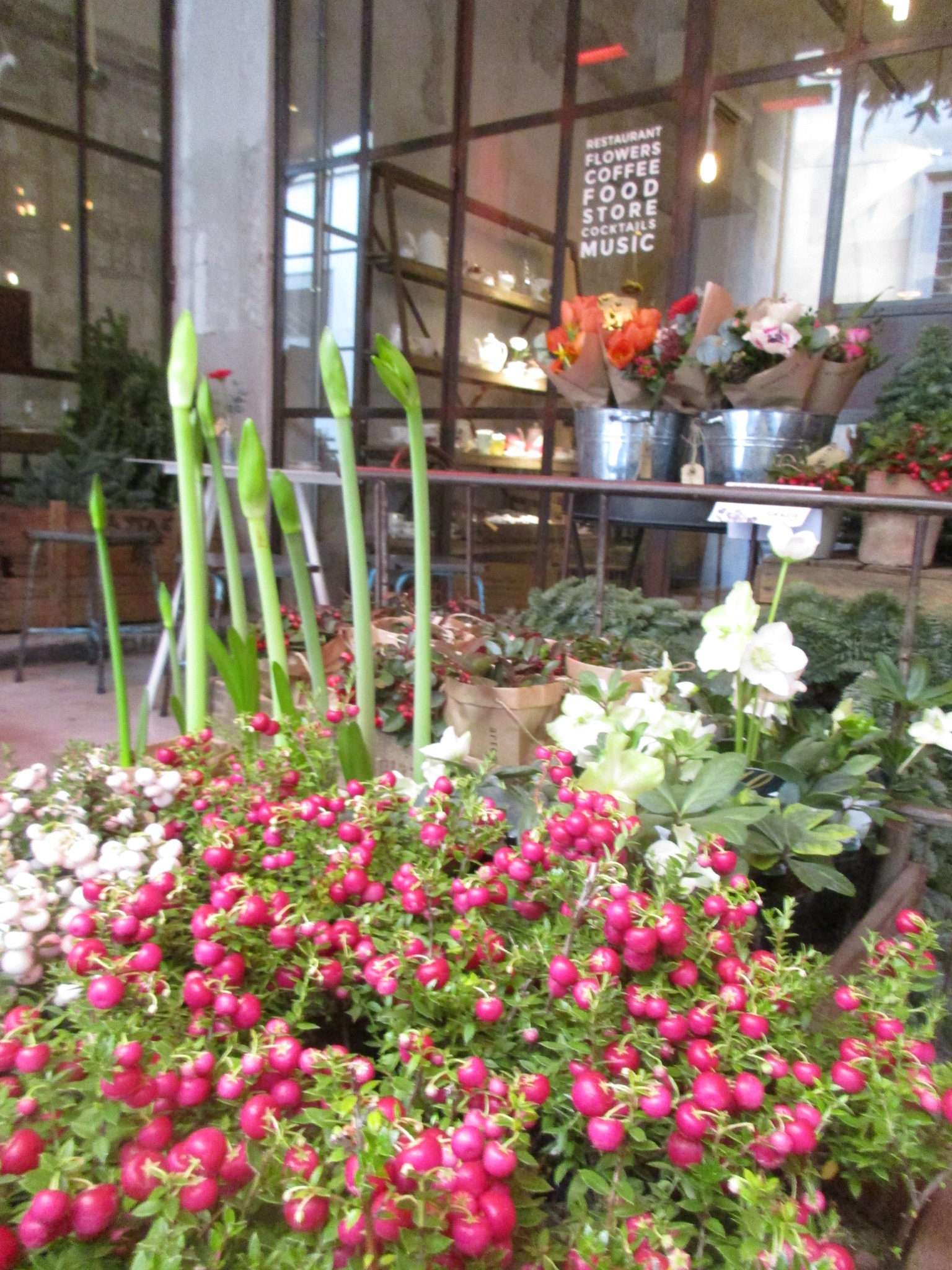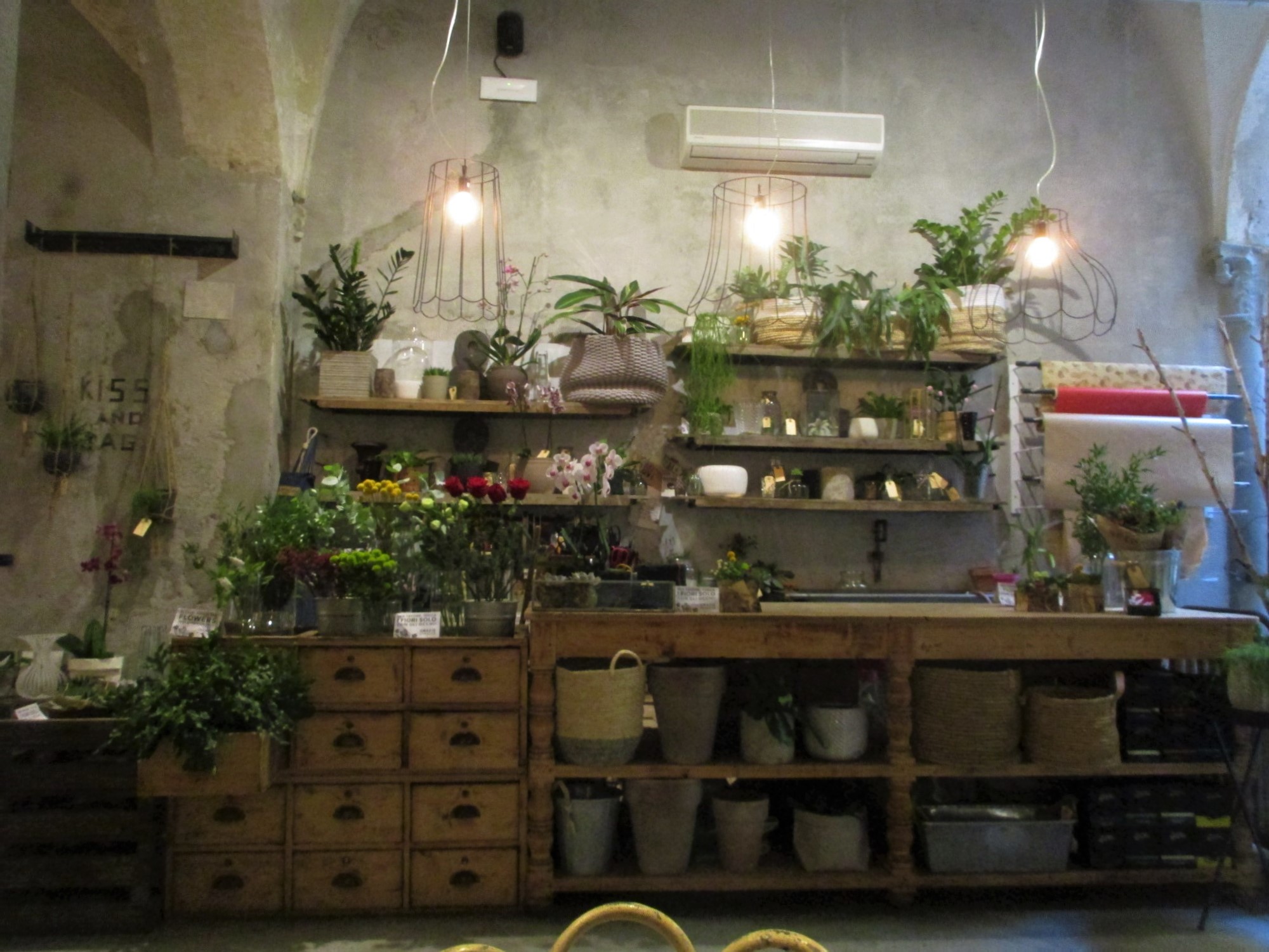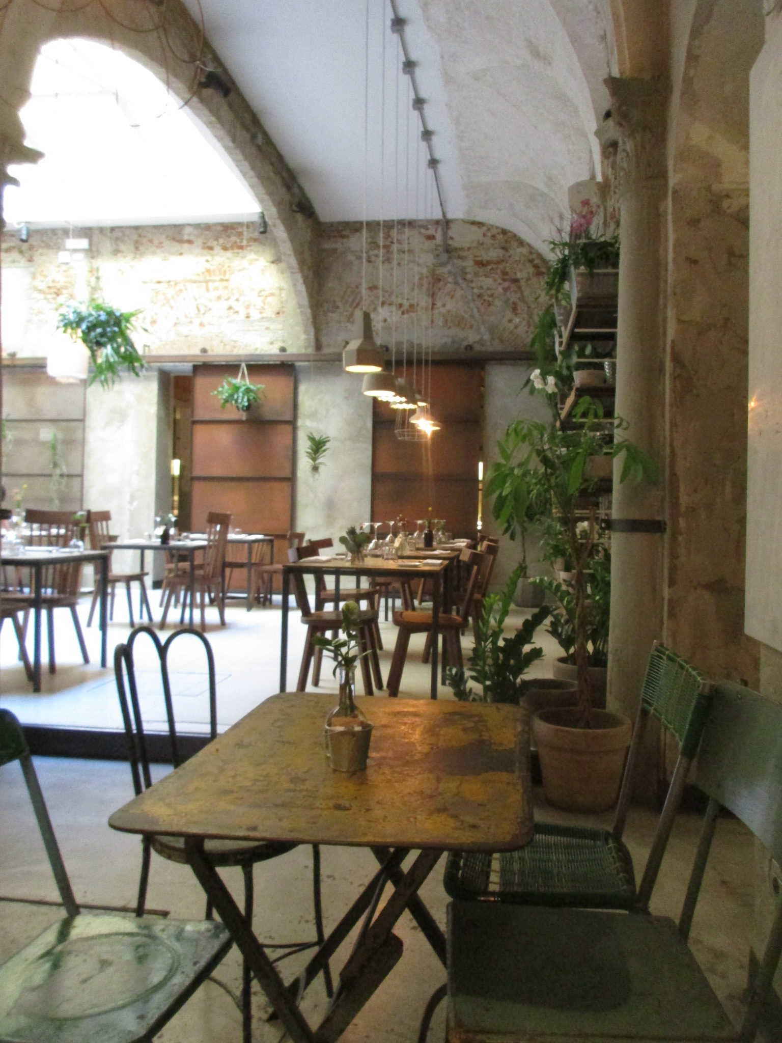 まず1つ目はサン・ロレンツォ地区、リッカルディ宮殿の裏にあるLa Ménagère。元は1896年に開店した同名の老舗家庭雑貨店があった場所で、近年「コンセプトレストラン」として再オープンしました。外席も少しありますが、中はとても広く、入ってすぐは注文カウンタとテーブル席、奥はソファーのある小さい部屋、左は雑貨や花の売り場もあるテーブル席、更にその左にテーブル席と奥にもテーブル席があります。