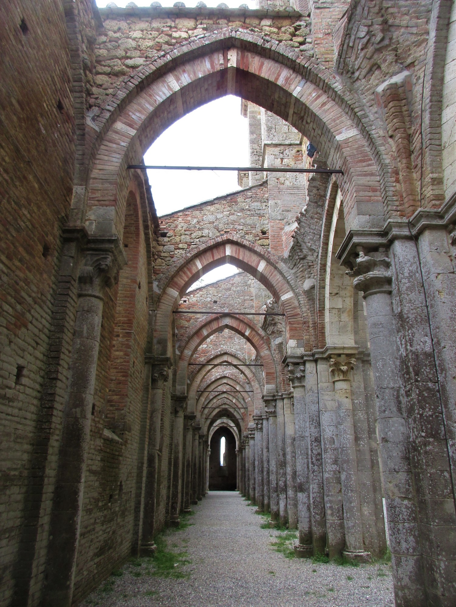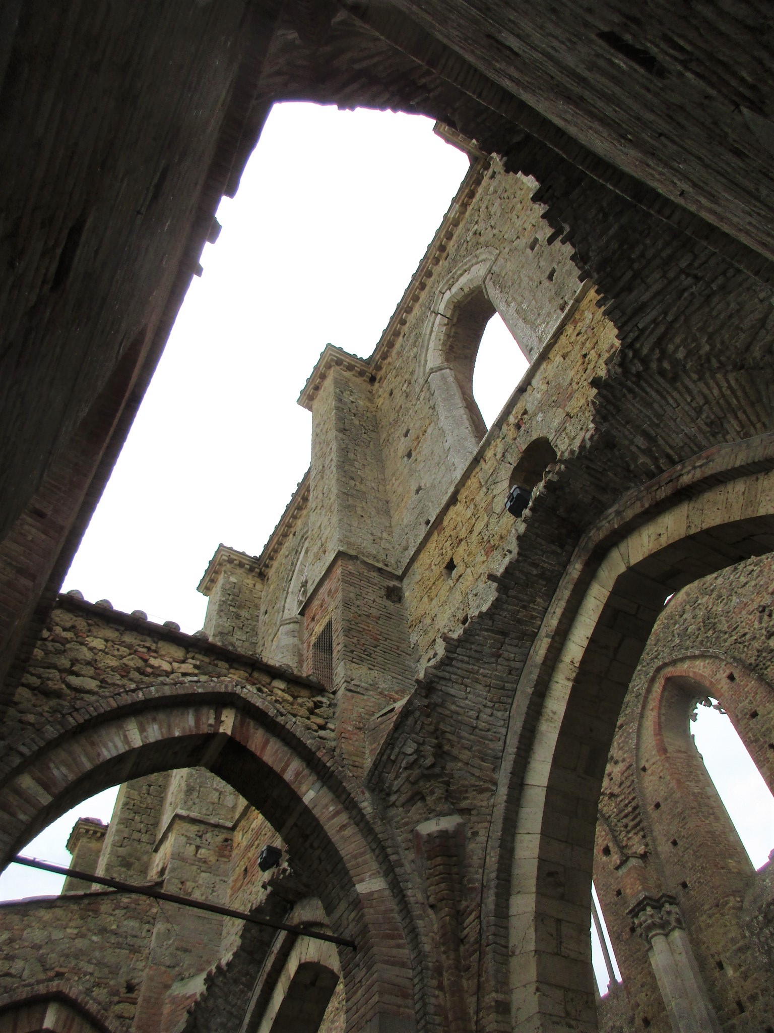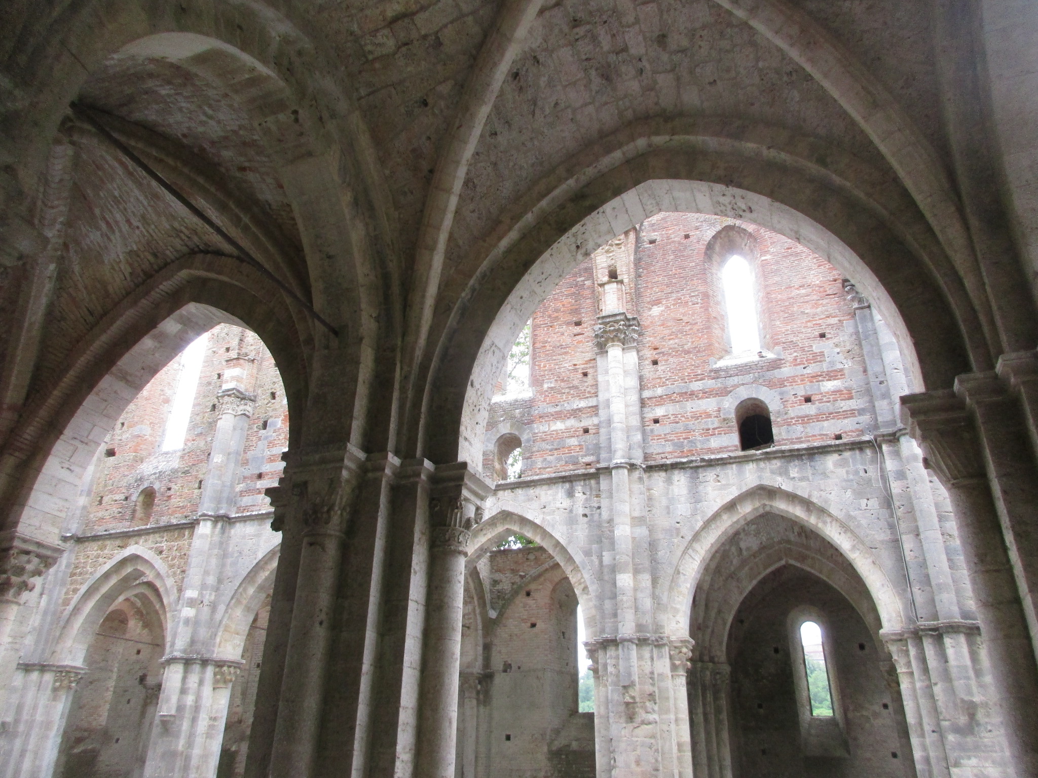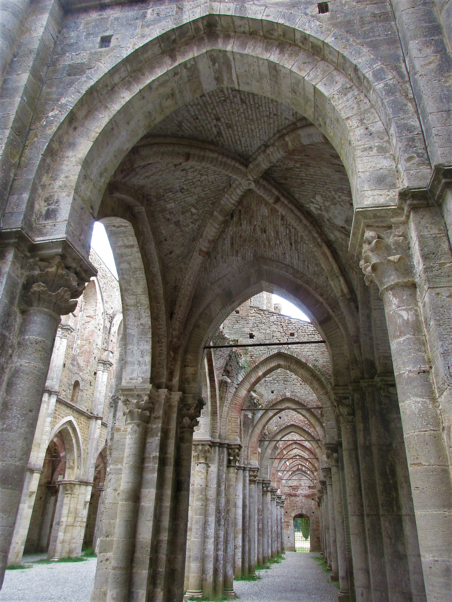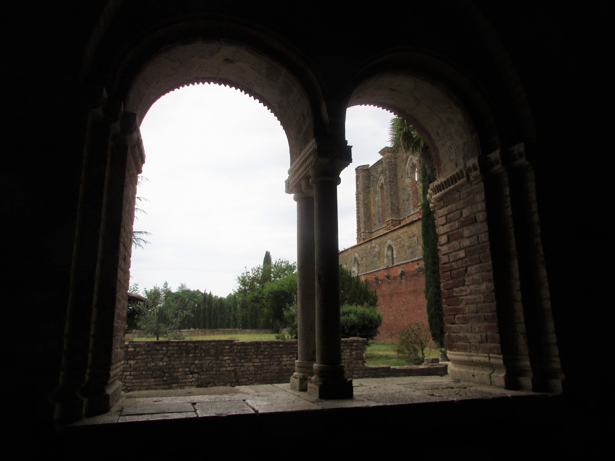 修道士たちがここを選んだのは、川に近い自然の中で、かつ重要地であるマレンマに通ずる道に近いことから。重要な修道院として発展を続けますが、1329年の飢饉、1348年のペスト、更にいろんな軍隊からの略奪などにより、徐々に衰退。更に外国人傭兵の通過により破壊され、15世紀には修道士たちもシエナのサンガルガーノ宮に移動します。修道院は臨時の修道院長に託されますが、その状況は悪くなっていくばかり。