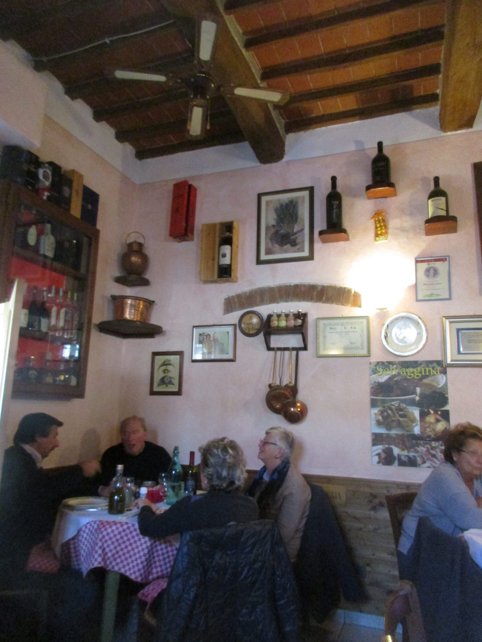 ここはお料理が美味しいだけでなく、お店の雰囲気、スタッフ、そしてシェフもホールに出てきてお客さんに挨拶したり、とにかく感じが良くて本当に気に入りました。そして豪華な前菜も8ユーロ均一、トリュフをたくさん使ったプリモも10ユーロ均一(さすがに白トリュフだと値上がりするでしょうが)と、内容からすればお値段もとてもリーズナブル!あまりにも気に入ったので、ここでランチを食べる1日ハイヤー周遊プランも作成しましたので、こちらをご覧ください → 悶絶トリュフランチと世界遺産・サンジミニャーノ
