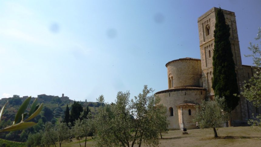 などが一般的かもしれませんが、最近はもっと具体的な方が多い気がします。近年、ロマネスク様式の教会を見ることを目的にトスカーナへいらっしゃるお客様が数組いらっしゃいました。その方たち皆さんが行かれたのが、TOPのモンタルチーノ近郊のサンタンティモ修道院。私も大好きな修道院で幾度となく訪れていますが、キリスト教徒でなくとも心が洗われるよう。修道院だけでなく、後ろの原っぱではま~ったりと典型的トスカーナの風景を見ることもできる!数年前には敬虔なカトリック教徒の方がいて、ここに宿泊もされました(※ここは観光目的では宿泊できません)。私も全部回り切れていませんが、シエナ県、アレッツォ県、グロッセート県で見たロマネスク様式の教会をご紹介します。