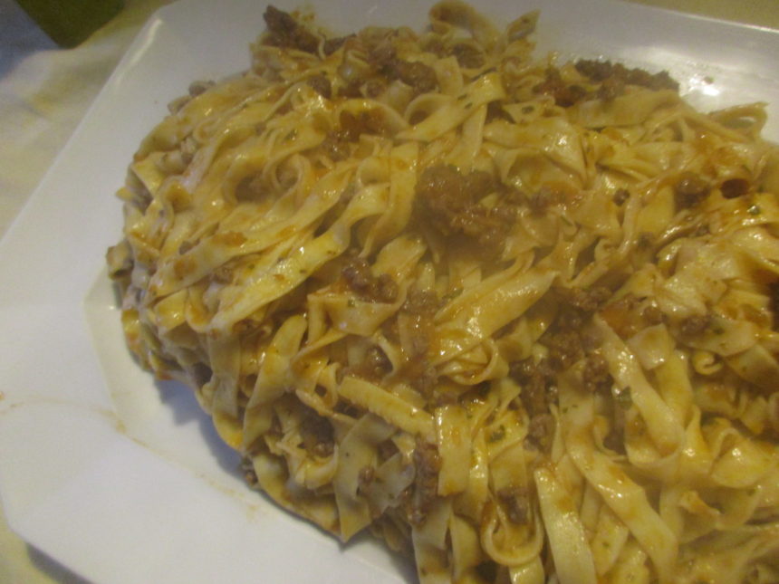 以前にカルボナーラはイタリア全土で食べられるわけではない、と書きましたが、おそらくどこでも食べられるのがこのミートソースとトマトソースではないでしょうか?ミートソースはイタリア語で「Sugo di carne(あるいはSugoのみ)」 。または「Ragu」 ラグーは最近日本でも使ってるみたいですね。有名なのはボロニェーゼ(ボローニャ風)ですが、まぁ他のどんな料理も同じように家庭ごと、店ごとにレシピも違うと思います。私のは、マンマのと、料理の師匠!ダンナの元勤め先のシェフのレシピの融合して、今のレシピに落ち着きました。