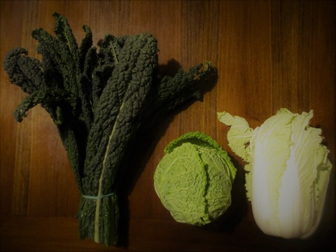 さて、気になるお値段ですが(笑)写真左から安い順、つまり、黒キャベツ < ちりめんキャベツ < 白菜・・・ここでも白菜が一番高い??・・・というか、黒キャベツ65円、ちりめんキャベツ72円、白菜150円。圧倒的に他の2つが安いから、すごく高く見えるけど、日本より安い??