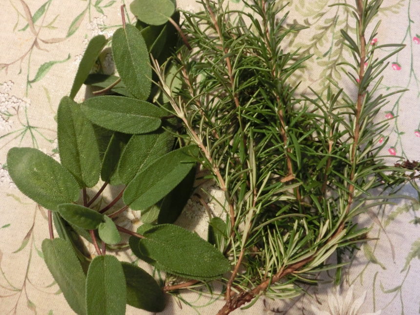 イタリア料理で欠かせないハーブ。うちも前住民が植えていたローズマリーはそのまま引き継ぎ、2年前からバジル、セージ、ミント、タイム、イタリアンパセリを増やしました。このうち通年元気でいつでも使えるのは、ローズマリーとセージ(セージは大寒波の際に一部枯れましたが・涙)。この2つ+αを使って作るのが、このハーブ塩です。