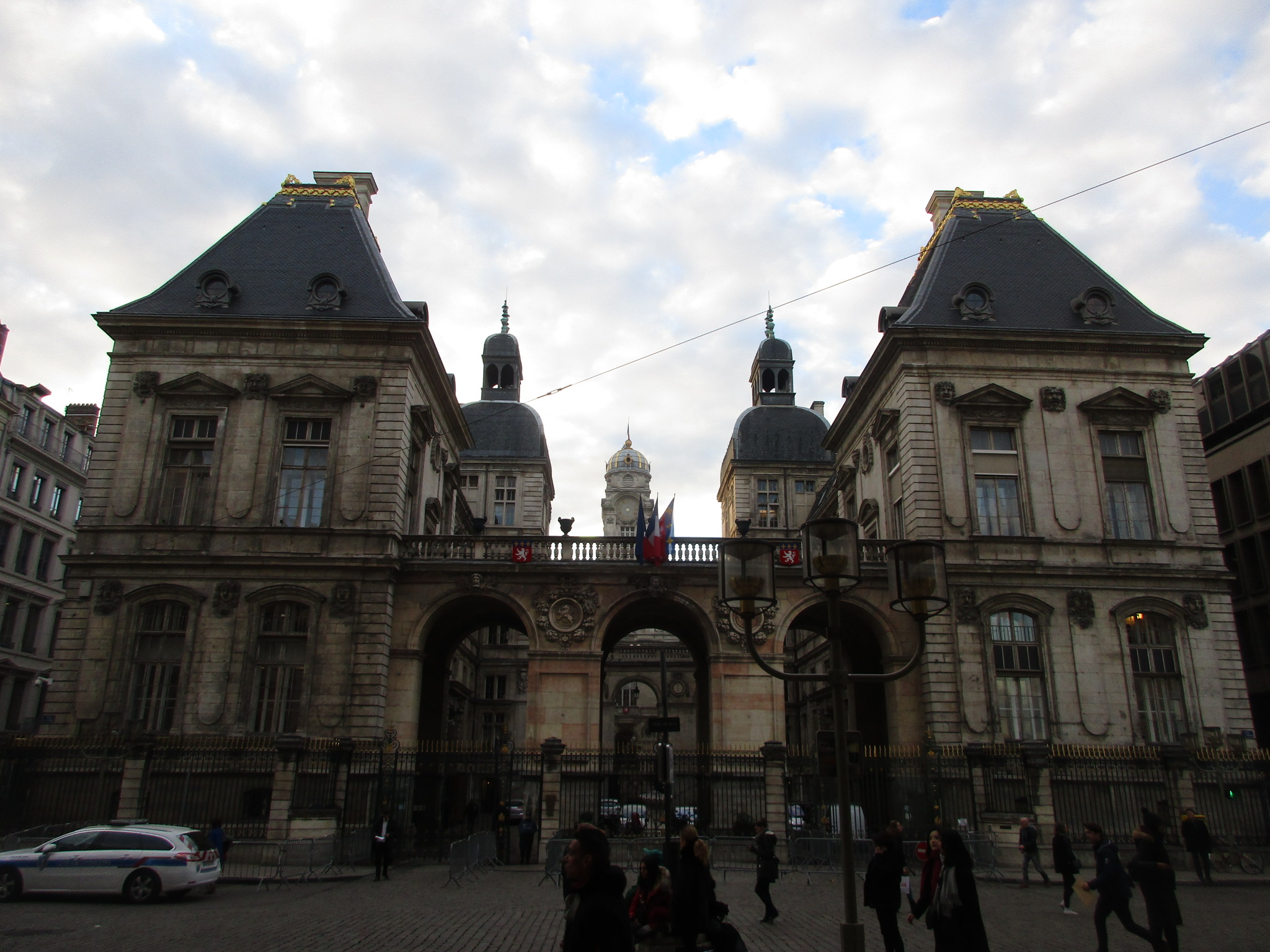 テロー広場。写真正面は市役所の正面玄関、右がリヨン美術館。有名なバルトルディの噴水は、私が行った時(2017年12月)は修復中でした (;・∀・)