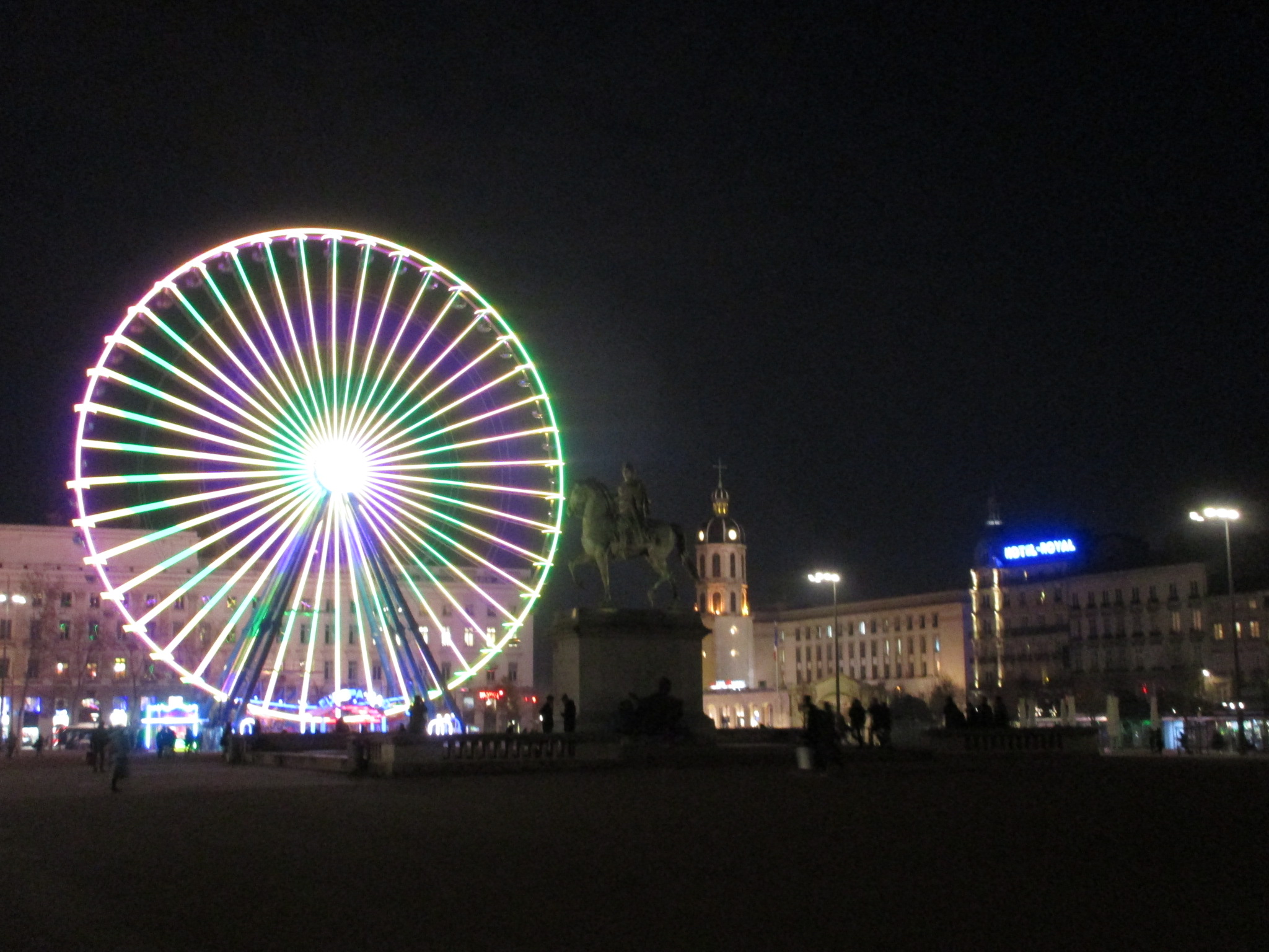 リヨンは、ソーヌ川とローヌ川の2本が通っており、その2本も町の南側で合流しています。この2本の川の間が「半島」と呼ばれるエリアで一番の繁華街となります。上の写真は、観光案内所もある最大の広場・ベルクール広場。