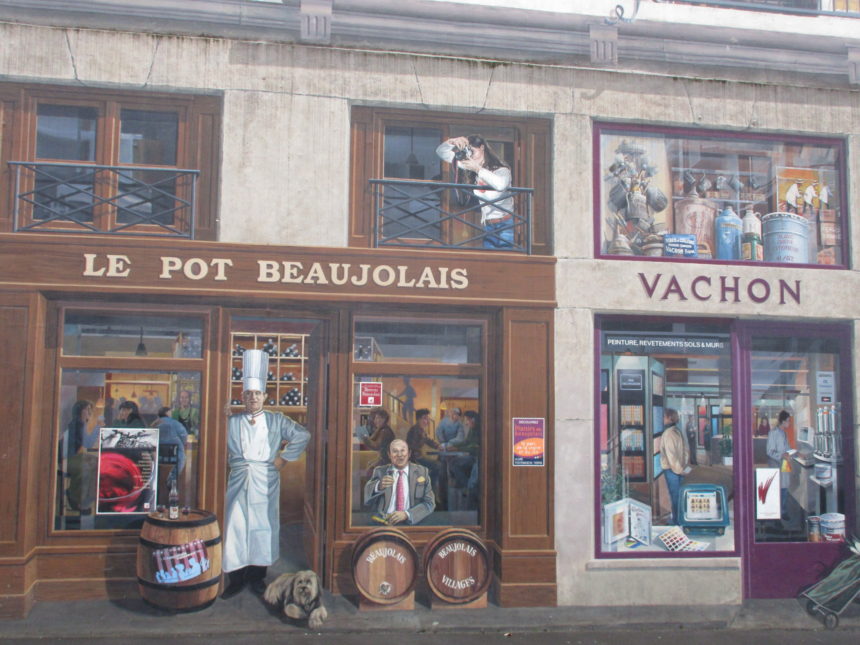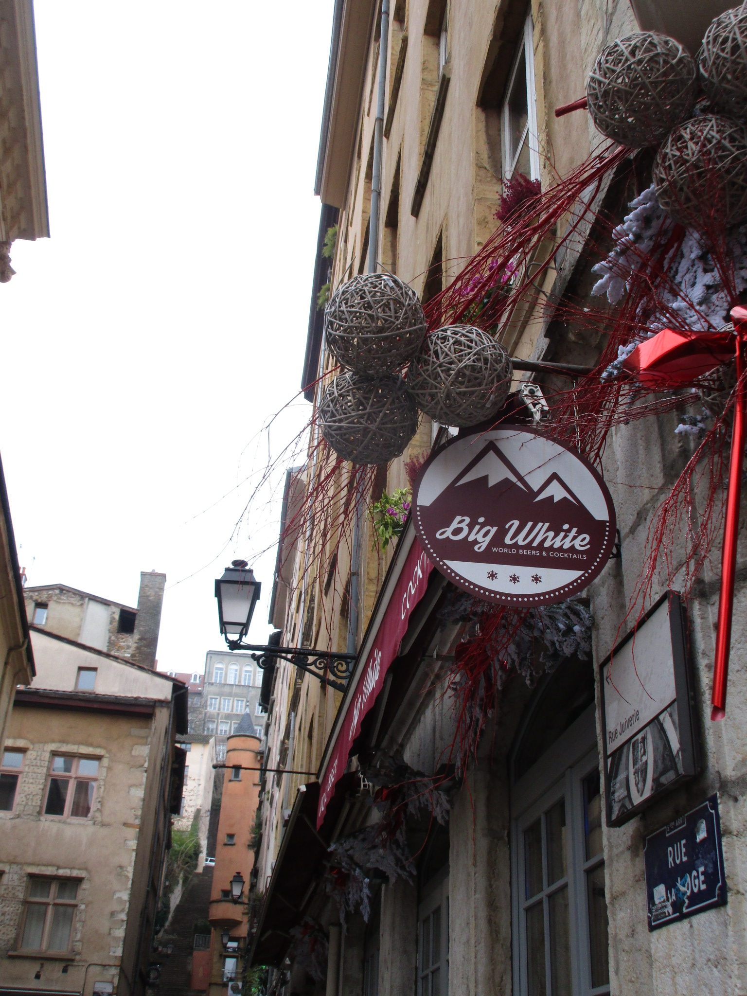 私も混じってみました(笑)。この坂を下ると、そのままクロワ・ルースへ、そこからリヨンの町並みが見えるビューポイントを寄りながら、もう1つ有名なだまし絵へ。その途中の界隈は、アート系のお店や雑貨屋さんが点在し、ウィンドゥを眺めながら行くだけでも楽しいです。そこから川沿いへ出て・・・