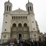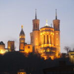 旧市街の一番の見所・ノートルダム寺院は丘の上にあるので、旧市街駅「Vieux Lyon」駅からケーブルカーに乗りましょう。寺院のあるフェルヴェールの丘までは、たった1駅。チケットは地下鉄・トラムと共通です。着いて登ったら、すぐにノートルダム大聖堂がドドン!とお出迎え。ゴシック建築らしく、ステンドグラスが大きくて精巧で美しい!地下礼拝堂も立派です。