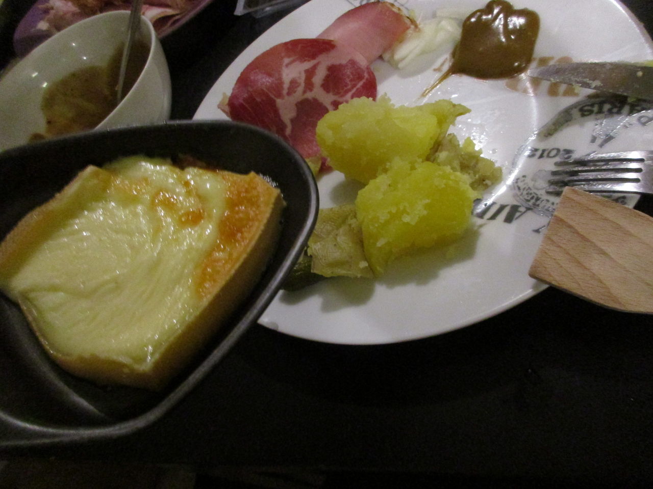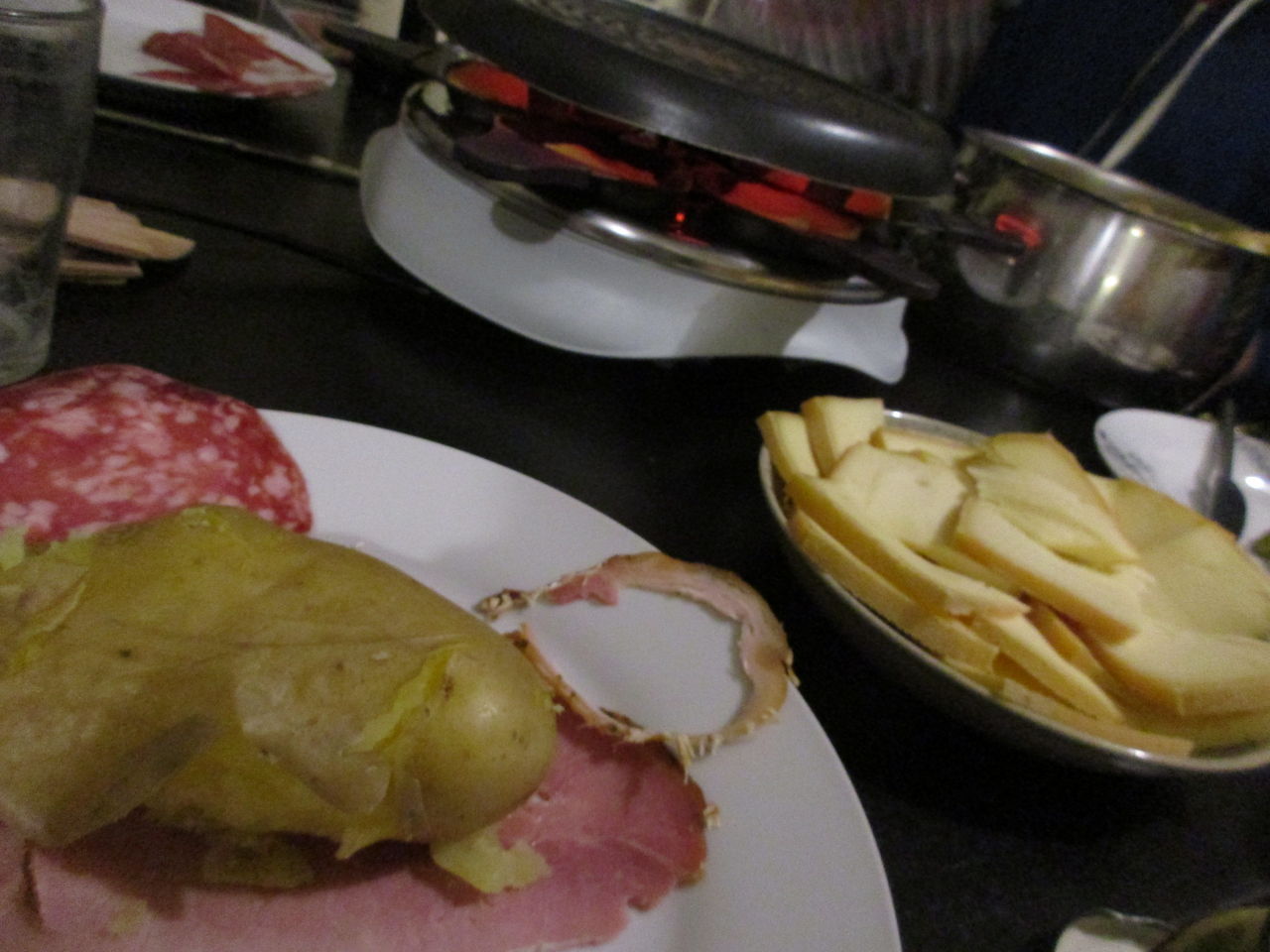 式の前の日は、式会場寄りの彼のお姉さん宅で、上記の5人プラス、お姉さんとその彼氏、お兄さんとその彼氏の総勢9人でにぎやかに。サラミやピッツァの後、メイン料理は・・・ラクレット!