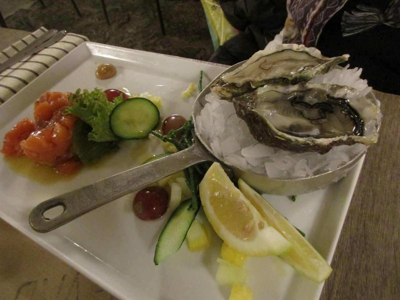 友達の「生牡蠣食べたい~」たっての願いをここで叶え(私は生牡蠣なしの同じもの、サーモンのタルタルのハーフサイズ)、