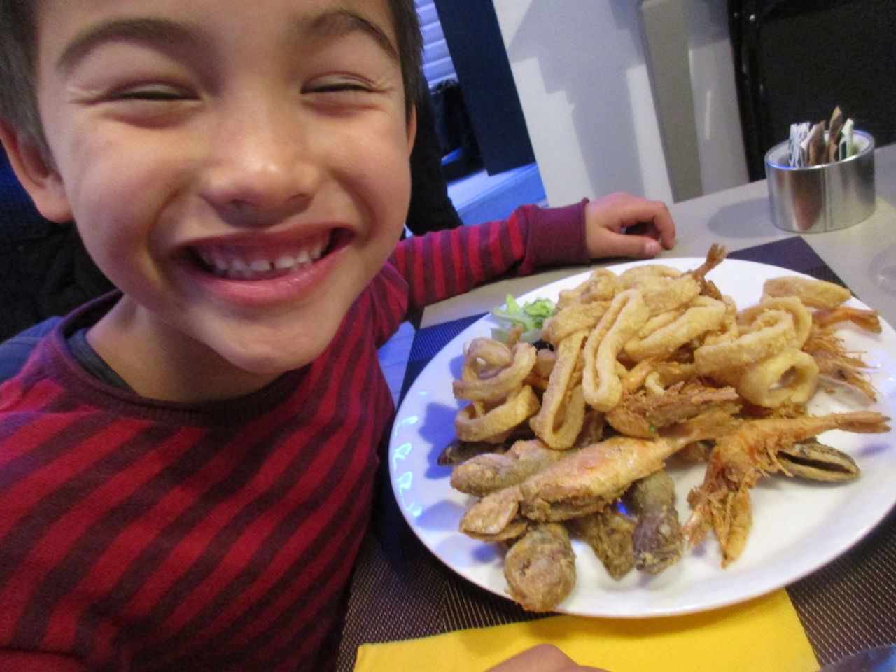 私たちはメニューの中から・・・定番のフライにご満悦の息子たち・・・