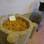 乳鉢は1300年頃まではシンプルなものでしたが、1400年頃から幾何学や宗教的なモチーフが用いられるようになり、さらに1500年頃からは動物・植物など様々なテーマで芸術的な側面が強くなっていったのだそう。素材の大半は銅か石ですが、アラバスターや木を使用したもののも展示されています。