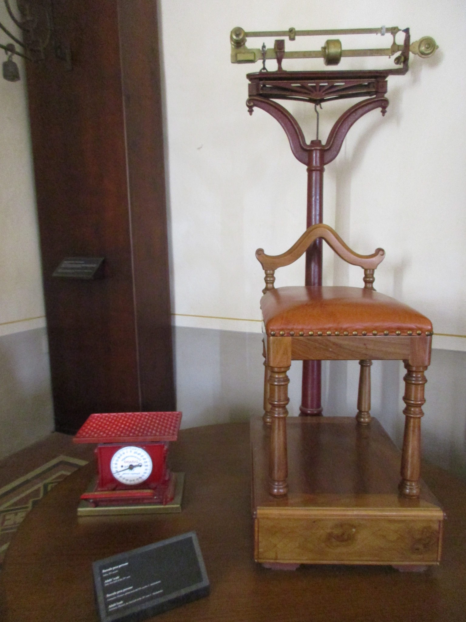 最初の間は、人間の量り。歴代の赤ちゃん用の体重計と、大人が立って量る体重計は自分で鏡で見るようになってます。左から2番目の体重計は、私が次男の時に保健所から借りたものと同型で、これを見た時、イタリアの古いものを大切に使う文化を実感しました。