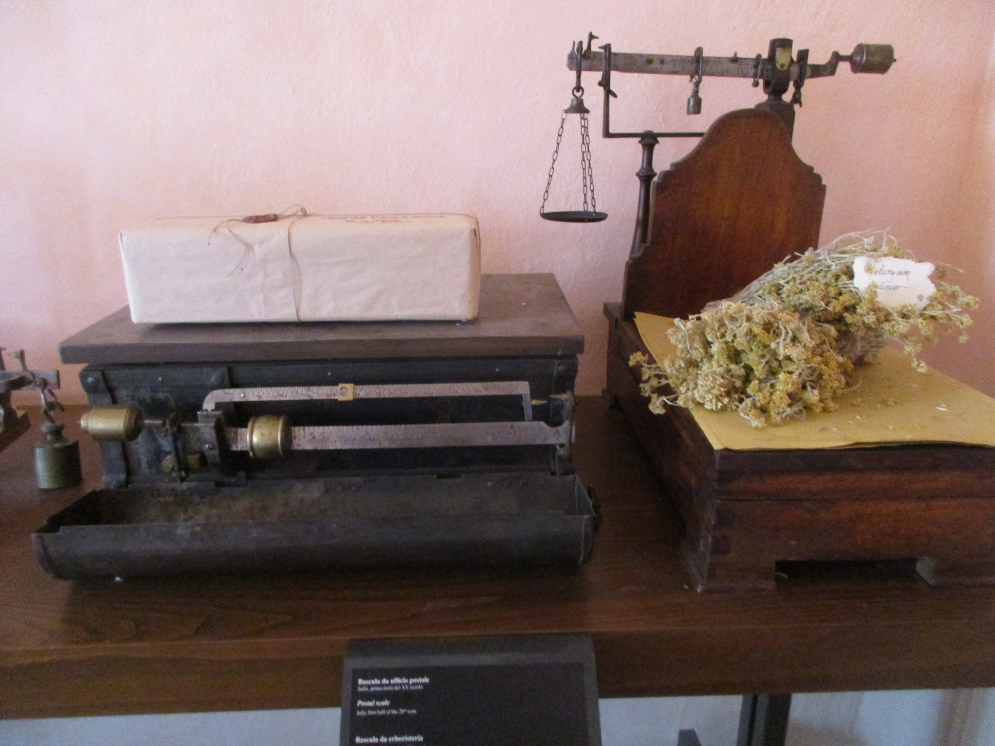それから薬草の量りや郵便局の小包用量り、毛糸の量り、イタリアらしい!ワインの樽の量りもありました。