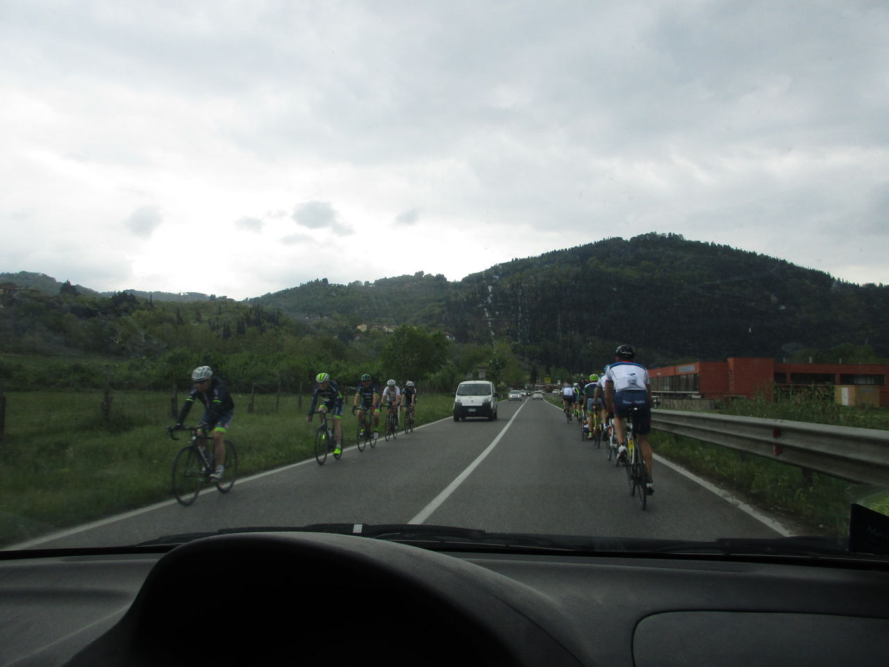 イタリアで昔から根強い人気のスポーツ、ロードサイクリング。真冬はそれほどいませんが、3月~11月はこんな感じ。まだ一列になってくれるならまだしも、並列でせり出してくる集団はホント危ない!!2年ほど前のことですが、プロ選手、しかもジーㇿディイタリア2011年優勝のミケーレ・スカルポーニ選手がロードで練習中にバンに跳ねらる死亡事故がありました。これはバンが停車義務を守らなかったことが原因のようですが、車が気を付けてても、これだけワサワサいると事故が起こりそうで怖いです💦