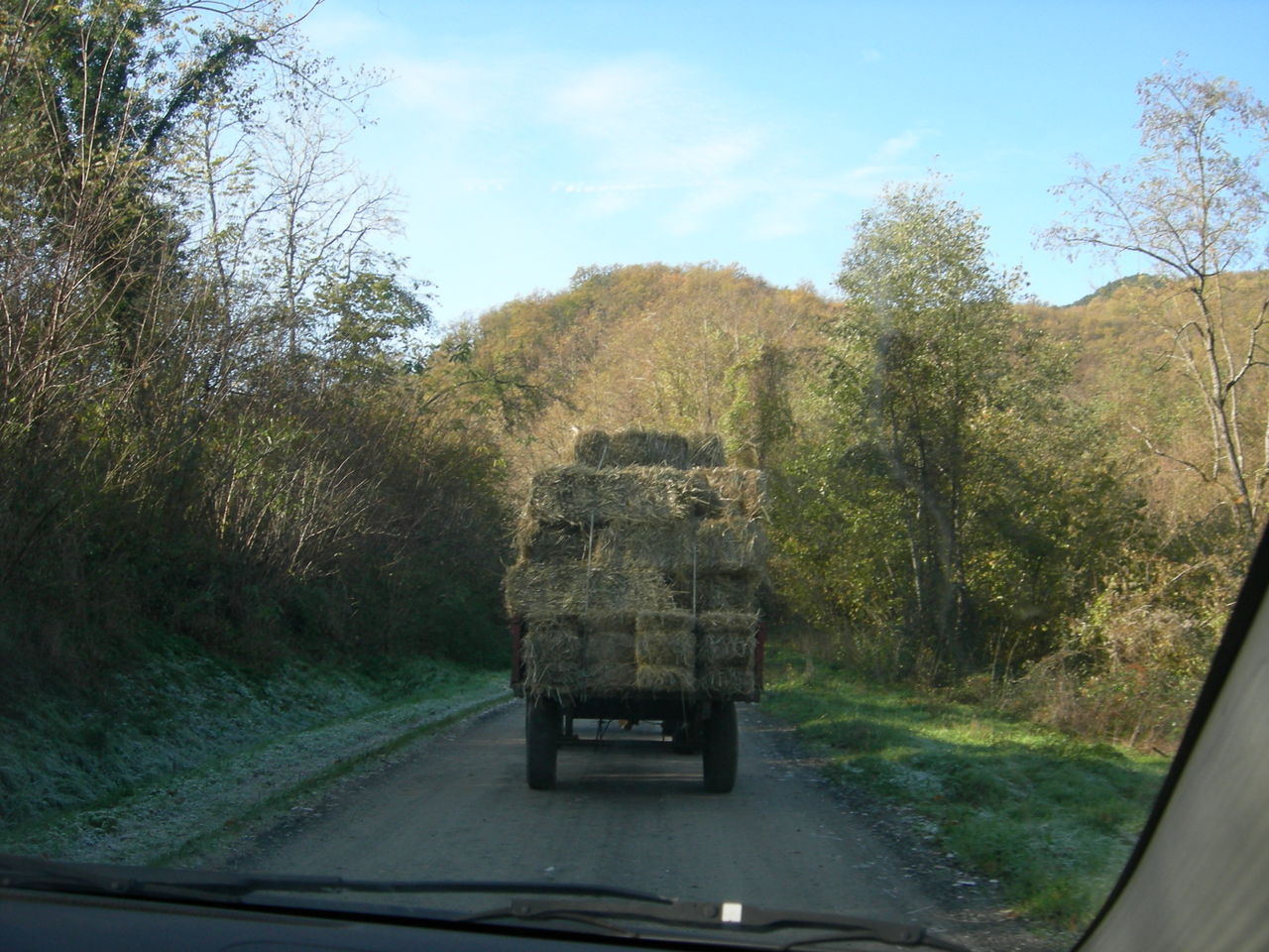 田舎道で渋滞してる時は、だいたい先頭にトラクターがいます。こんな風に藁だったり、薪だったり、動物だったり、9月の収穫シーズンだとブドウを積んでたり。横に寄って譲ってくれるか、自分かトラクターが別の道を行くまで、忍耐で待つのみです。
