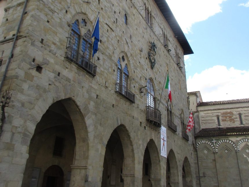 今でこそ、長さ、重さ、面積の単位はほぼ世界共通かと思います。しかし、イタリアは国家統一が1860年、その前まではいろんな「国」が混在していたので、それぞれの「国」またはさらにその中のエリアにて単位がバラバラだったそうなのです・・・偶然にもそれを知ったのは、ピストイアの市役所を訪れた時。入口にあるコレを眺めて、しばし、うーん、と考え込んだのです。