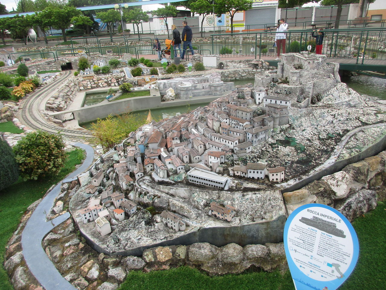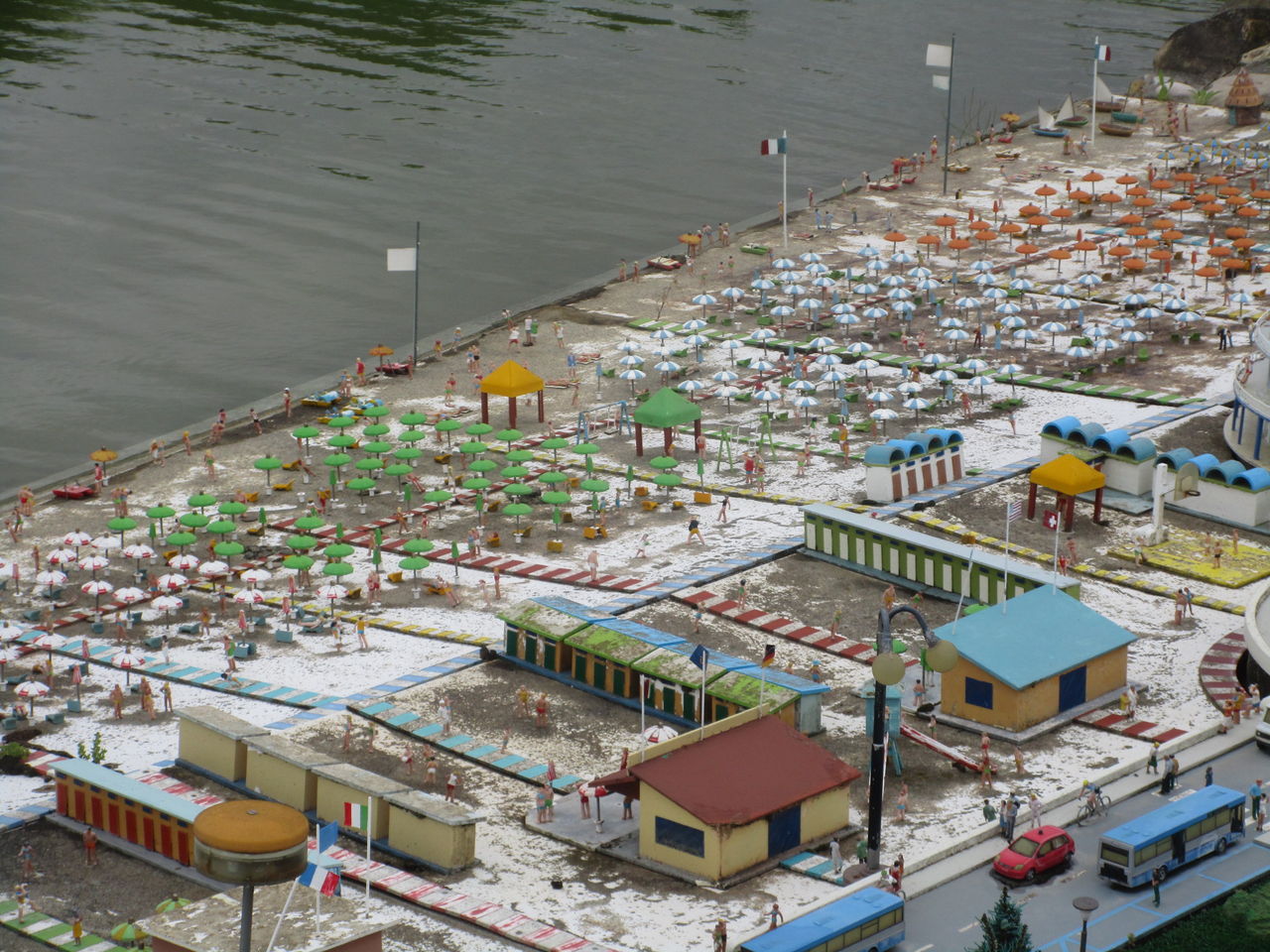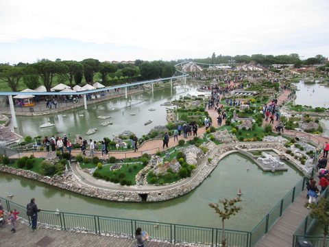 1970年に設立された、おそらくイタリアではテーマパークの先駆け的な存在が、この「イタリア・イン・ミニアトゥーラ=ミニチュアのイタリア」。3月~11月の開場期間は50万人の人が訪れるそうです。トップの写真はモノレールの上から撮影したものですが、ご覧の通り、イタリアの形をしており、中は主要都市のモニュメントが並んでいます。