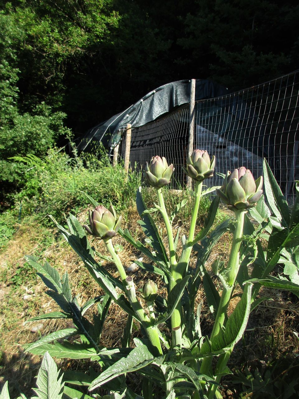 イタリア野菜もたくさん日本に輸出または生産されるようになってきていますが、まだまだ普及していないものの1つが、アーティチョークではないでしょうか?昨日の投稿でほぼ原形の写真を掲載しましたが、畑ではどうなってるっかって?