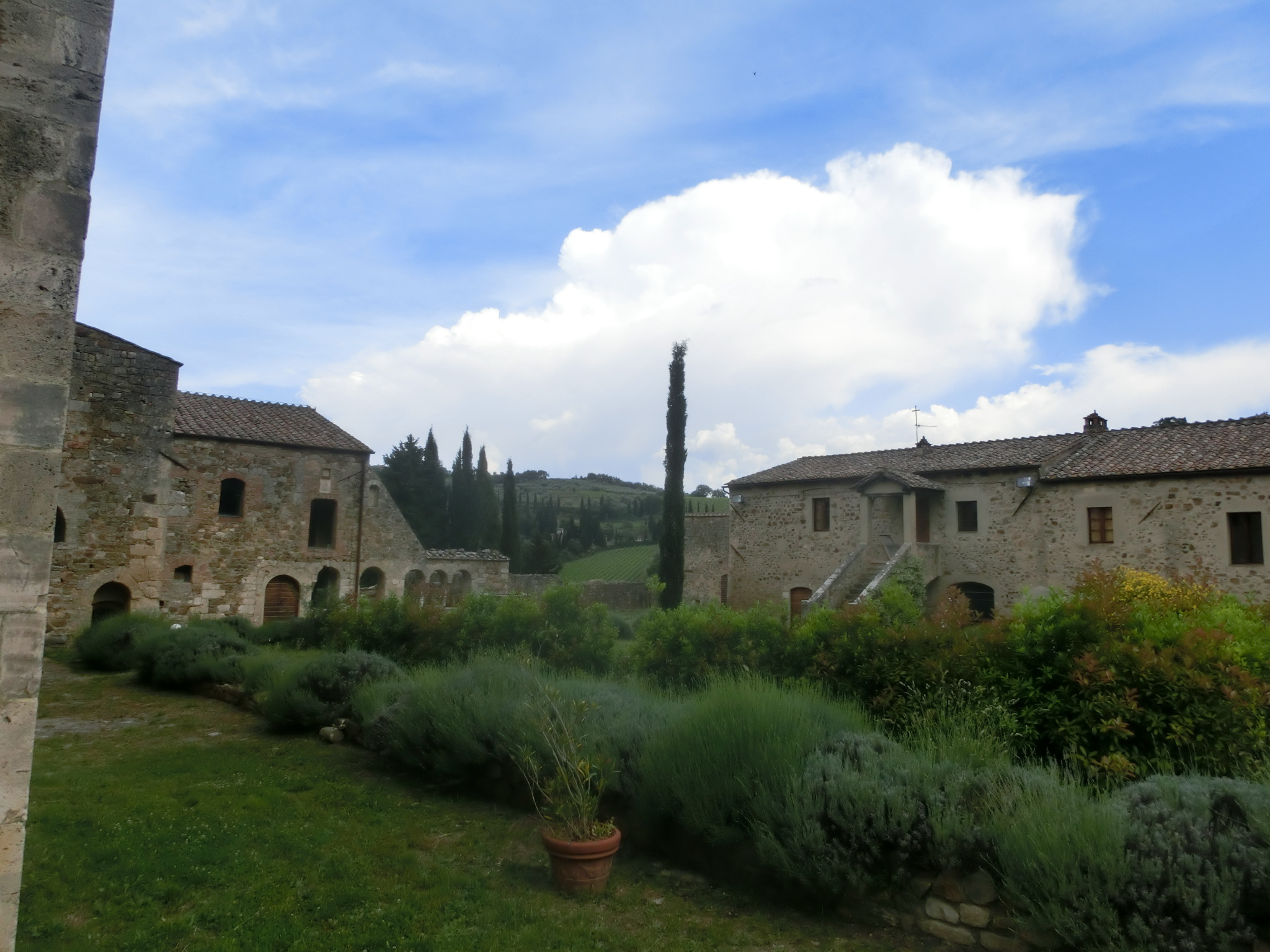 シエナから114番のバスでモンタルチーノ乗り換え、0P1番でカステルヌオーヴォ・デッラバーテ下車、そこから徒歩15分ほど。ただし本数が少ないので、モンタルチーノに滞在していればバスでも行けるかな、という程度。あとは車がおススメです。