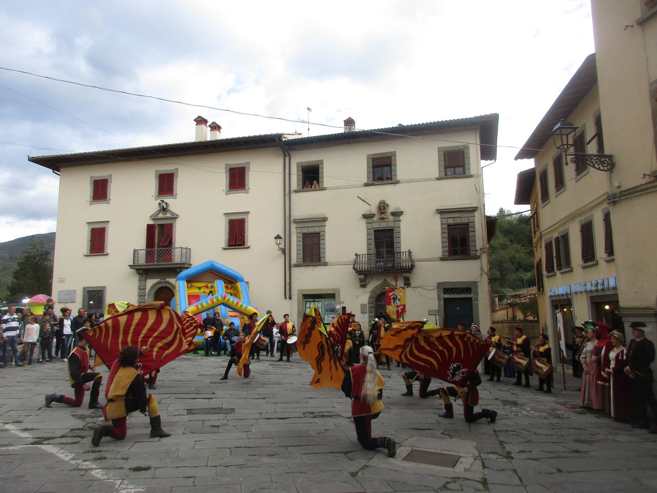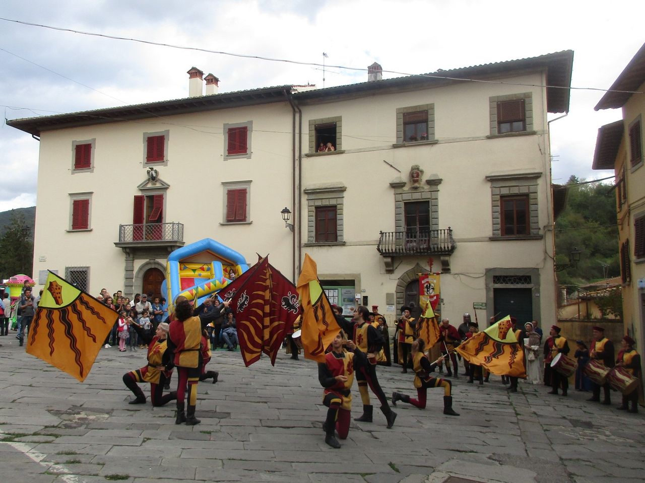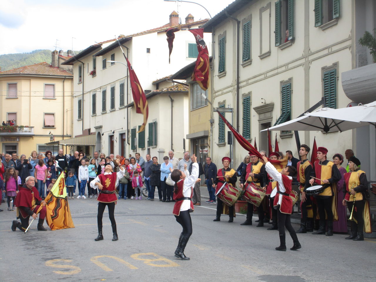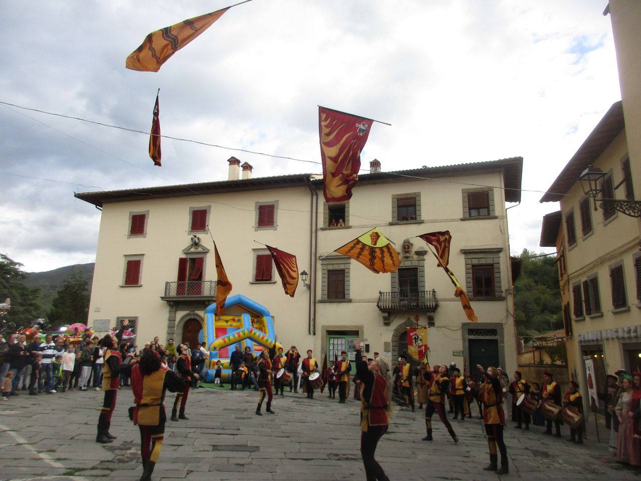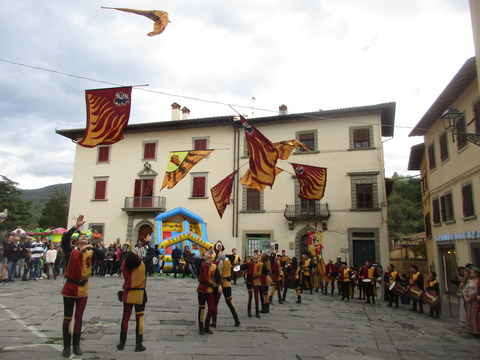 写真は毎年10月第二週末に行われる、隣町の秋祭りにて。ズバンディエラトーレのフィレンツェの団体がきており、まだ入りたての子供から