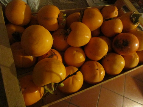 さらっと書いたこの記事がすごいアクセスを頂いたので、また柿ネタを(笑)毎年恒例?で、2軒隣のジョヴァンナから、お庭の柿のおすそ分けを頂きました。半分をマンマにおすそ分けしましたが、その残りだけでもまだまだいっぱい。どうやって食べる?幸い、もらったままではまだ固いので、あるもの買ってきてこうすることにしました。
