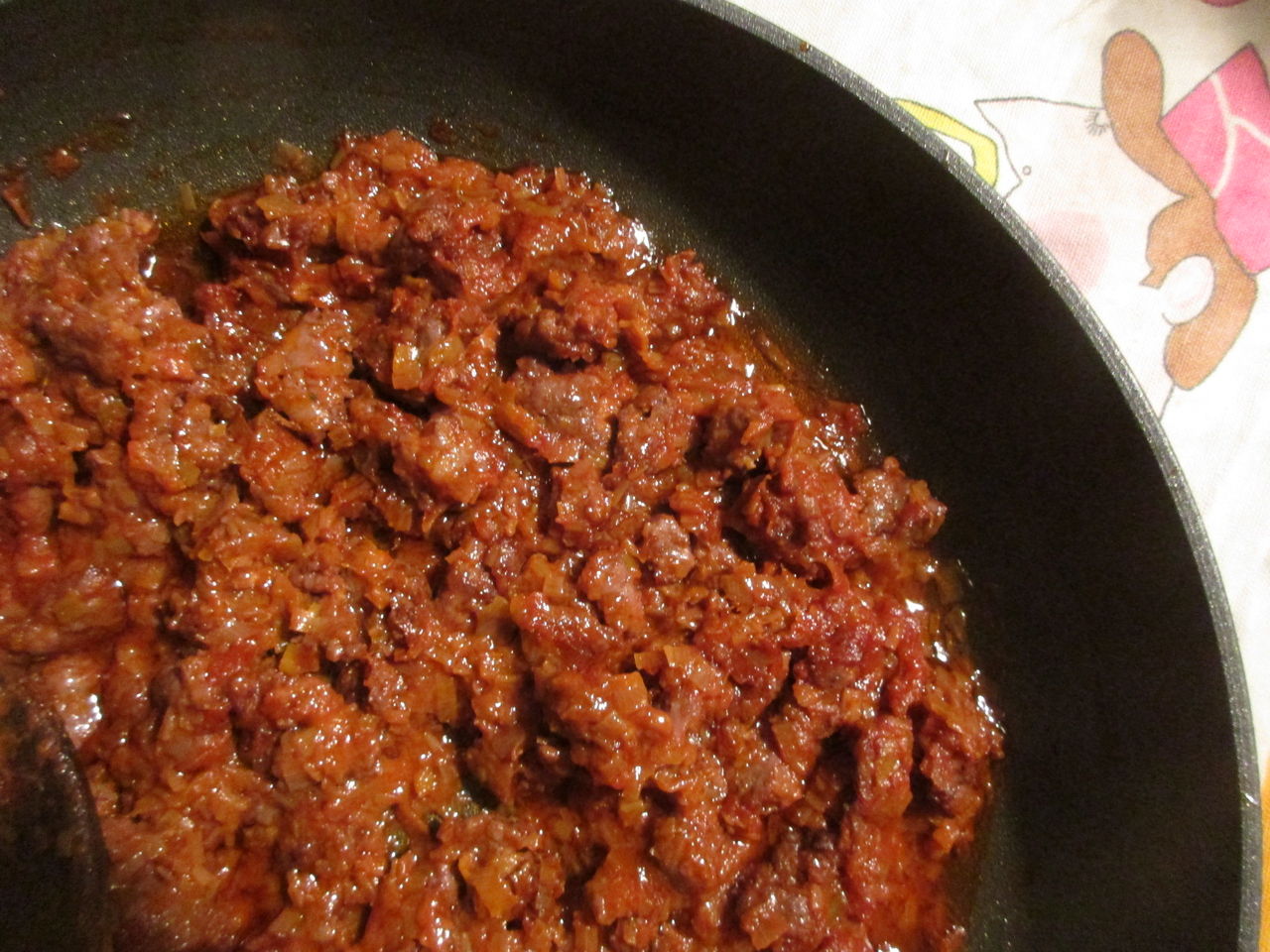 サルシッチャは袋から取り出して潰すのですが、これをゴロゴロっとした感じに残すか、パラパラにするかは好みです。私は面倒くさいのもあり(爆)ゴロゴロ派。ミートソースよりこってりした味になるので、パンチのあるソースが欲しい場合はこちらがおススメですよ~!