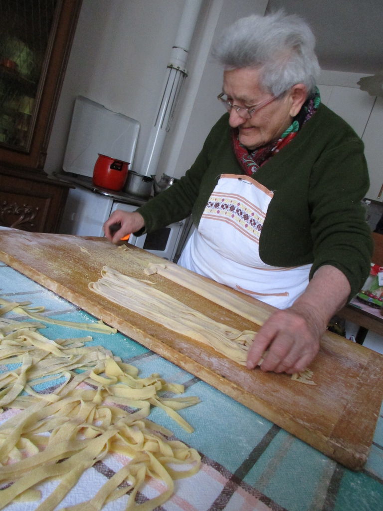 この麺棒で一気に1枚に伸ばし、手で切る妙技はまだまだ修行が足りないけれど、家族のためにパスタを打つのは、私がしっかり続けていきたい・・・日本人の私が言うのは変かもしれんけど、この伝統は継承していきたい。何より私が、パスタを打つばーちゃんの姿が大好きだったから。ばーちゃんから習ったパスタを、ダンナや息子たちにも食べてもらいたいから。