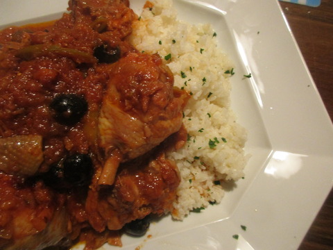 ◎玉ねぎ・1個 ◎人参・1本 ◎セロリ・1本 ◎鶏肉のいろんな部位(骨付き)・1キロ ◎カラーピーマン・1個 ◎黒オリーブ・10~20個 ◎トマトピューレ・200mlくらい ◎お米・2合 ◎バター・20g ◎オリーブオイル、白ワイン、塩、イタリアンパセリ・適量