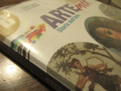 日本の中学にも、「美術」はありますが、私の記憶が正しければ、主に実技とかマテリアル、色の話だけだったような・・・イタリアでも、もちろんそれらもあるのですが、とにかくスゴイ\(◎o◎)/!のは、「Storia dell’Arte = 美術史」。日本だと「世界史」の中で、超有名どこをサラッと触れるだけでしょうが・・・こっちは、ガーーーッツリ、この美術史の教科書、なんと400ページ!!中学3年間同じ教科書とはいえ、それでもすごいページ数、さすが本場でございます💦