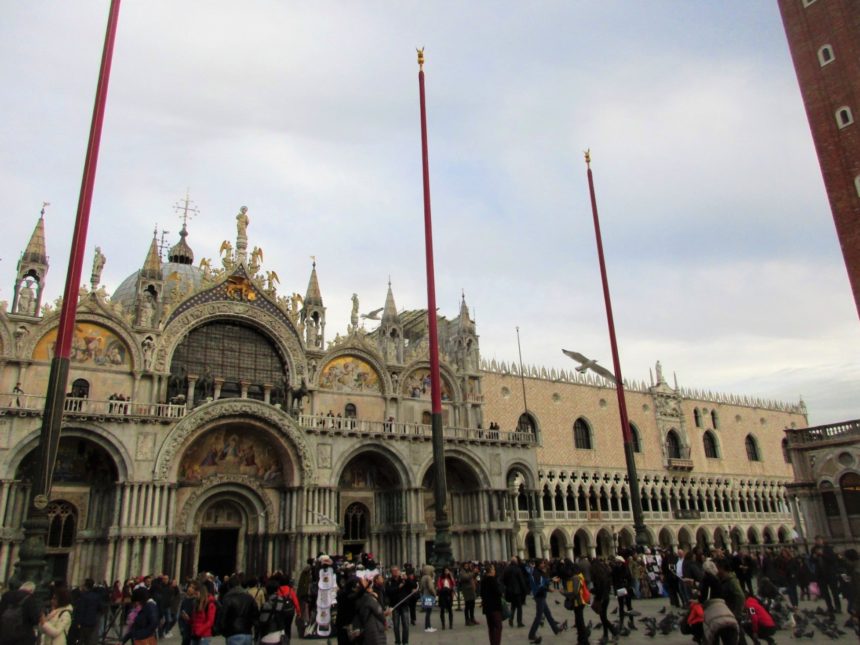 ムラーノ島(1、2)から本島に戻った後は、ゴンドラに乗り、サン・マルコ寺院を見てリアルト橋を渡って、駅へ向かいながら町を散策。
