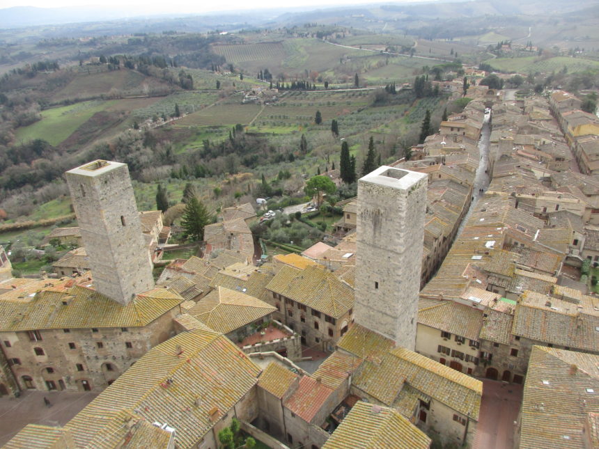 先日モニターツアーでサンジミニャーノに行った時、久々に塔にも上りました。以前は塔とその下にある市立美術館が共通券だったのが、今回行ったら、更に、考古学博物館、中世の薬局、近代美術館、サン・ロレンツォ・イン・ポンテ教会も同じ券で入れるようになっていました。これだけ入って、大人9ユーロ、2日間有効。しかし実際に入ったのは、塔と市立美術館のみだったし、更に贅沢を言えば、ドゥオモを入れて欲しかったなぁ、とも。