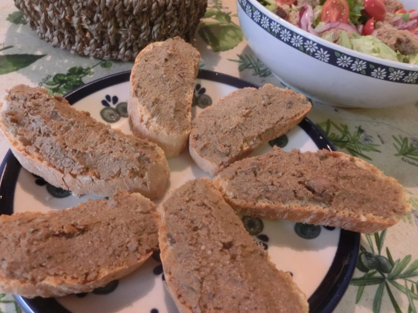 フィレンツェ料理・トスカーナ料理と聞いて思い浮かべるのは何でしょう?おそらく、ガイドなどの筆頭に来るのがフィレンツェ風ビステッカ、かもしれませんね。しかし、レストランでも家でも超定番・・・といえば、私が一番に思うのは、このcrostini al fegato レバーバテのクロスティーニ。レストランなどで必ず前菜のメニューにある、crostini misti クロスティーニミックス(パンにパテやソースのかかったもの)、やantipasti toscaani トスカーナ風前菜(クロスティーニ、ハム類、チーズ類、オイル漬けの野菜キノコなどの盛り合わせ)に入っています。トスカーナでは市販品も普通に売ってますが、同じ値段の材料費で4倍の量ができ、冷凍保存も可能。野菜とレバーという栄養満点素材なのも嬉しく、野菜たっぷりなのでレバーの臭みもありませんよ。