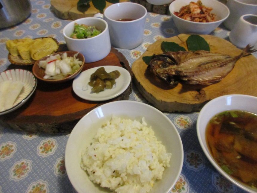 このお漬物やキムチ、納豆(!)、干物も全部手作り!そしてご飯も雑穀米で味わい深く、もう何杯でもおかわりしてしまいそうな勢い!!ここで美味しいものをたらふく食べると、お昼ご飯はいらないくらい充実しています。そしてこのB&Bのマスコットであるダックスフントちゃんの焼き印、木のプレートも超可愛いくて、目でも楽しめます。