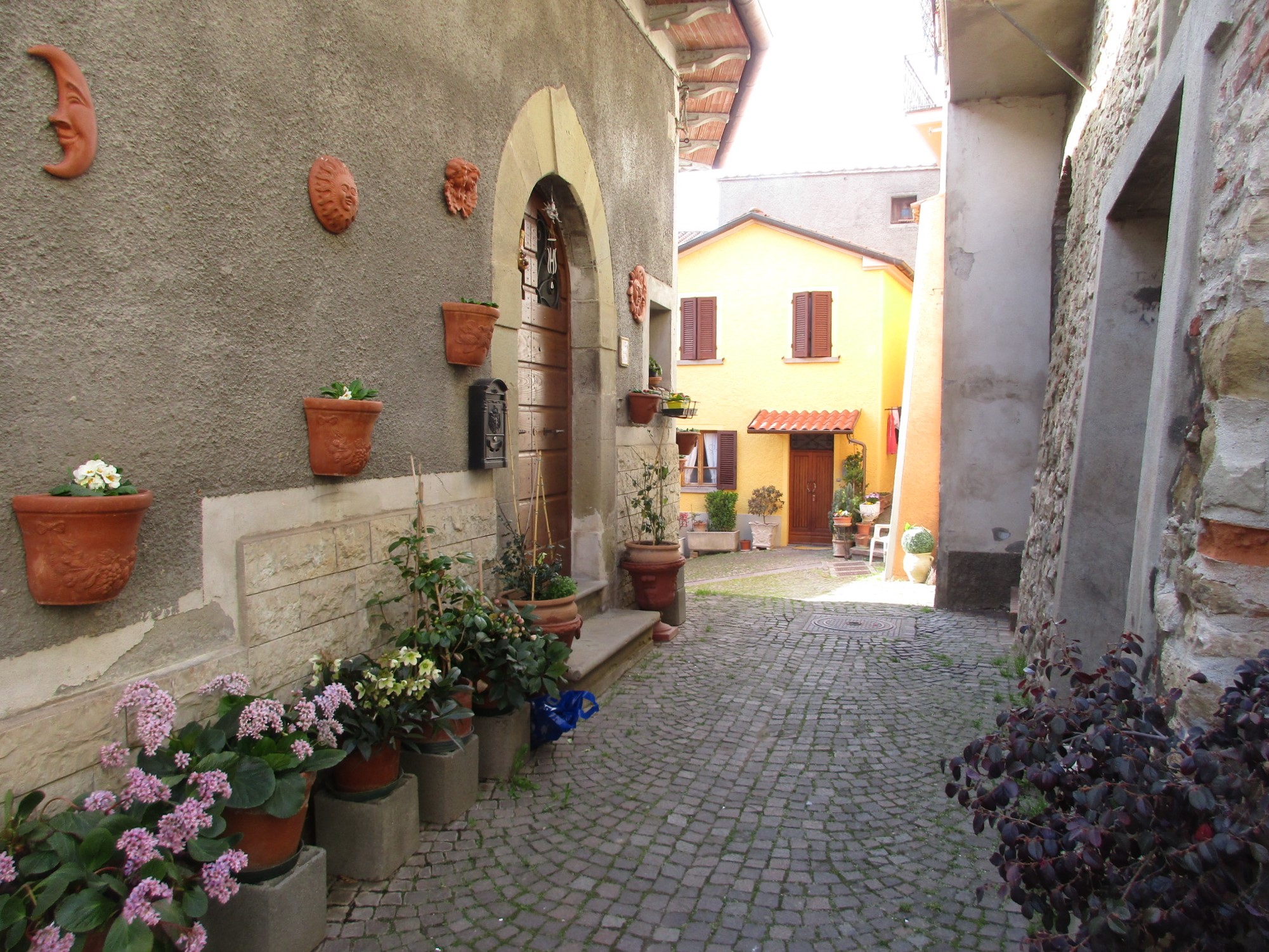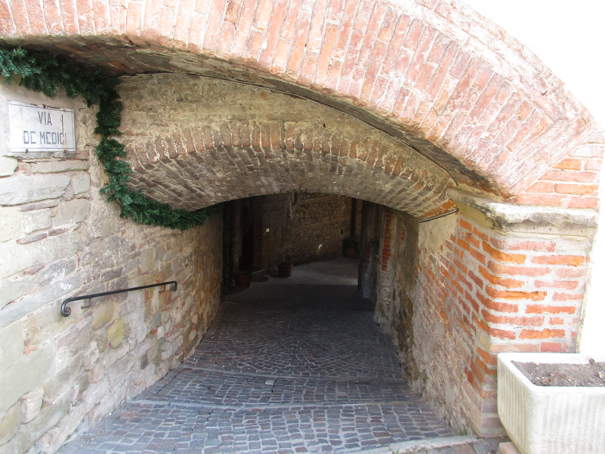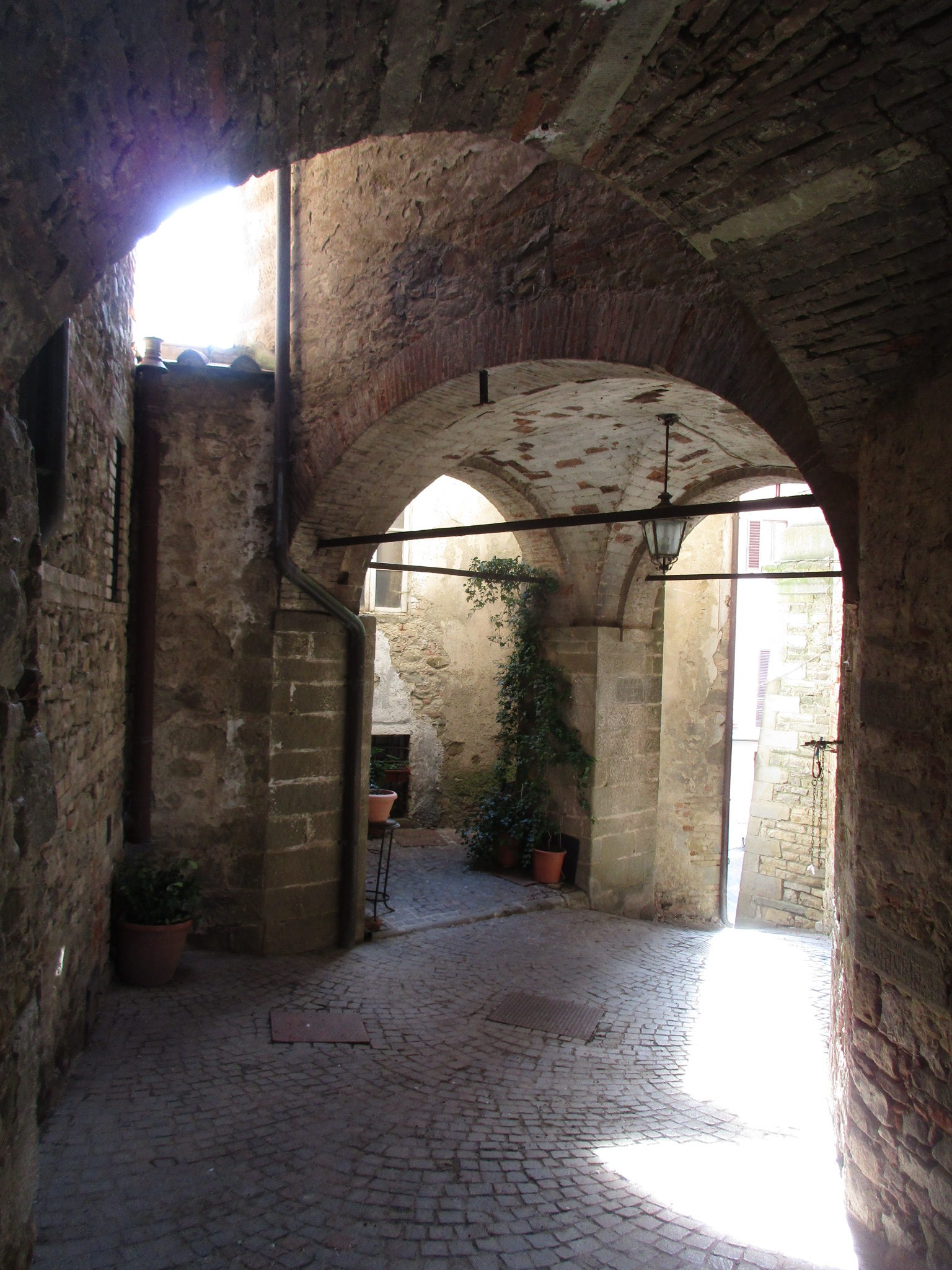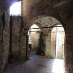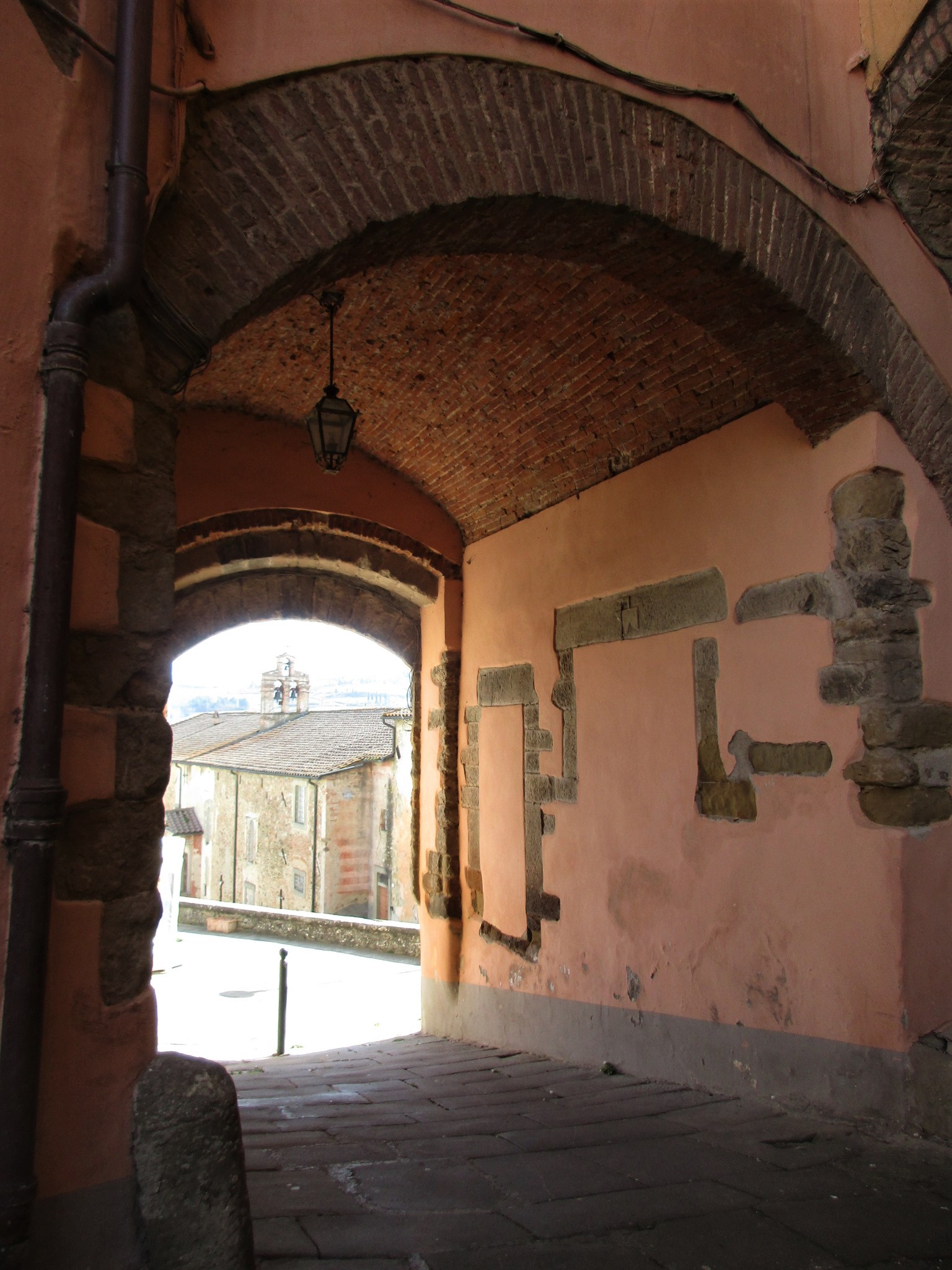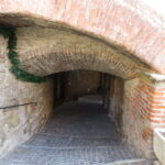 博物館を出たら、ピンクの建物のアーチから旧市街へ入りましょう。モンテルキは、穏やかな空気が流れる本当にのんびりとした村。訪れる観光客の大半は「出産の聖母」目当てかと思いますが、ピンクの門を入ってすぐ右手にある「量りの博物館」は、出産の聖母博物館との共通パスもあり、結構面白いので、時間のある方はこちらもどうぞ足を運んでみては。
