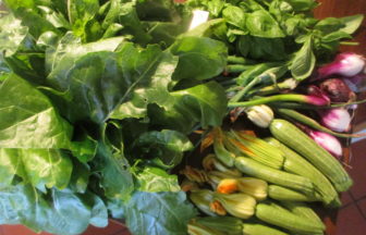 2)ナスは縦に切り、粗塩を振って重ね、重しをのせて灰汁を出す