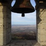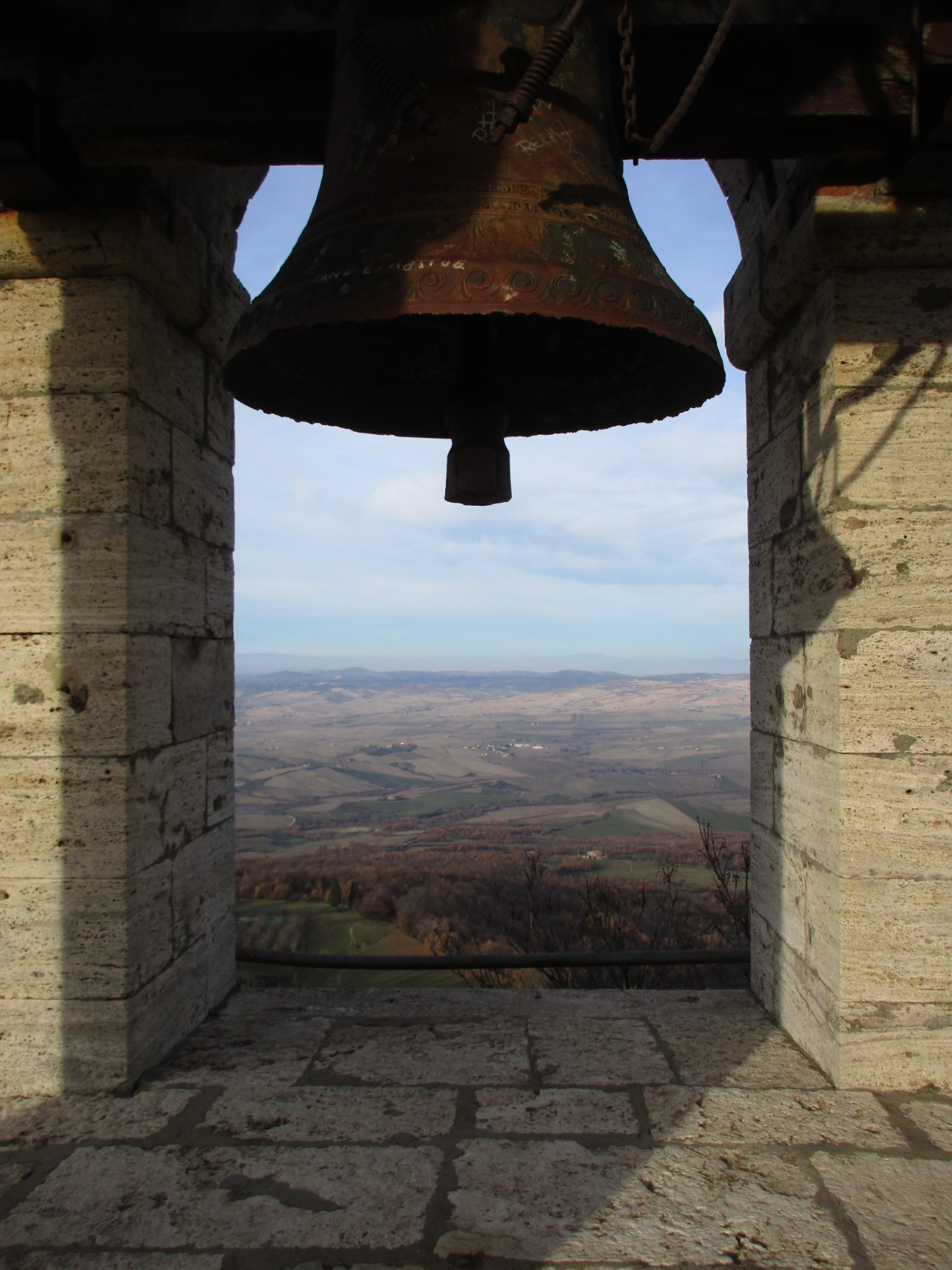 塔の上には古い鐘があるので、その囲いを額縁に見立てた写真も!